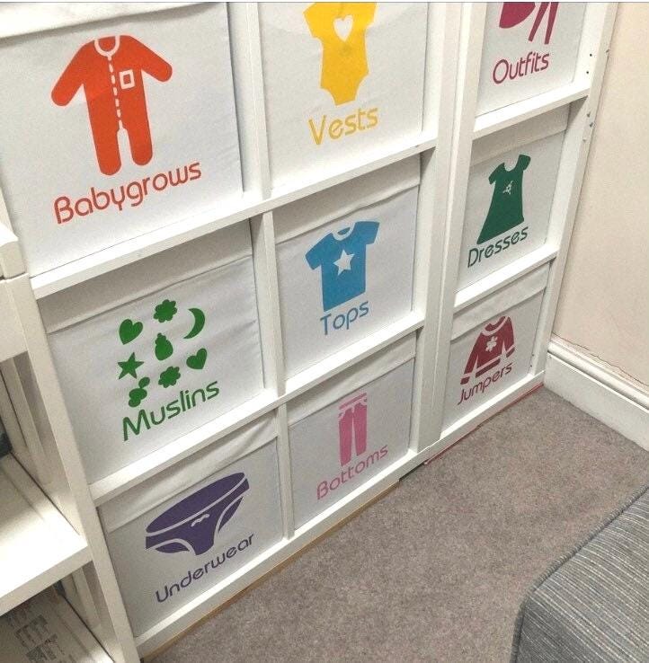Clothes Storage Decals | Kids Room Storage Labels | Wardrobe & Drawers Decals | Self-Adhesive Personalised Decals | Personalised Stickers