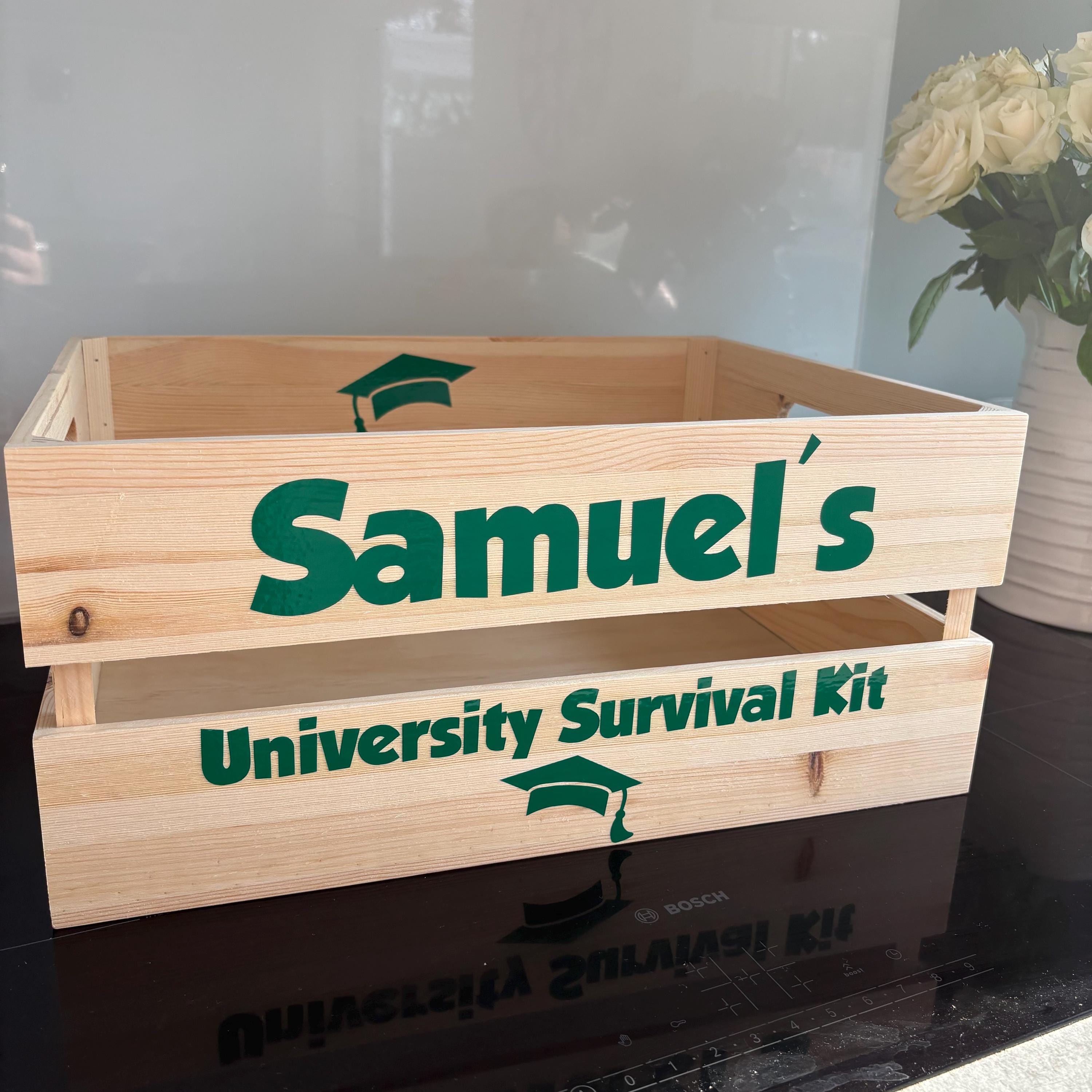 Crate - University Survival Kit | Personalised Wooden Crate | Starting Uni Crate | Gift for her | Gift for him