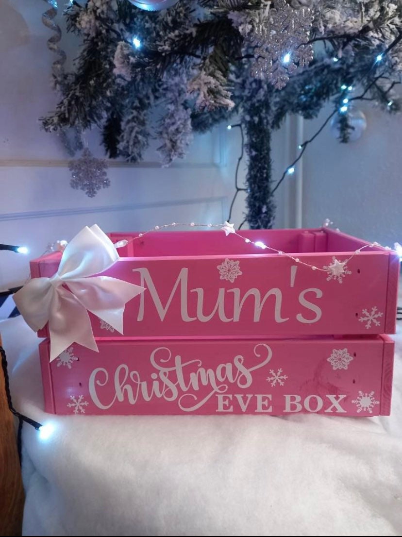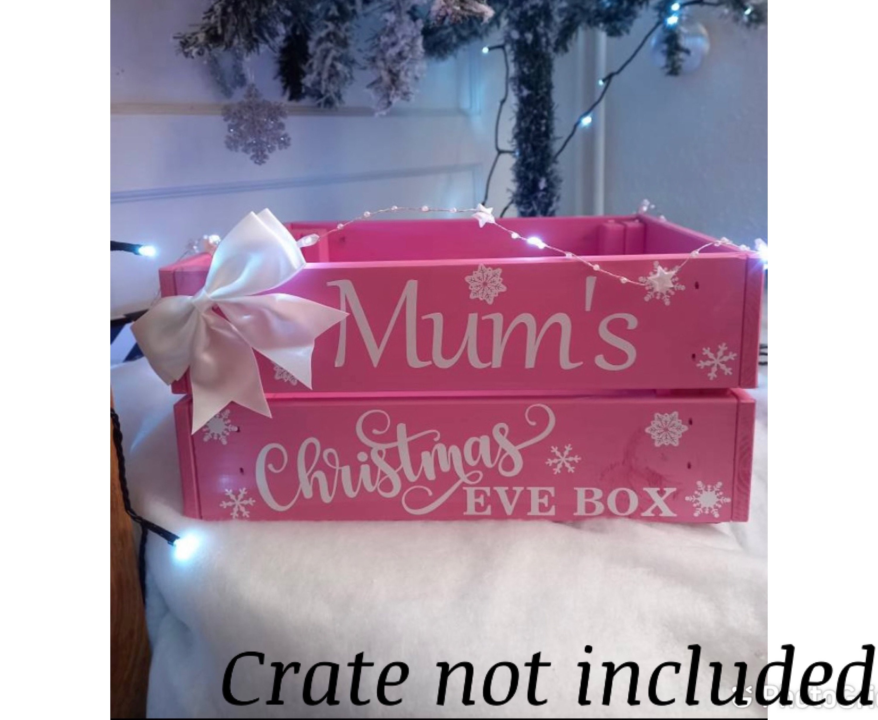 Bespoke handmade vinyl decals perfect for Christmas Eve boxes and crates, personalised to your specifications.