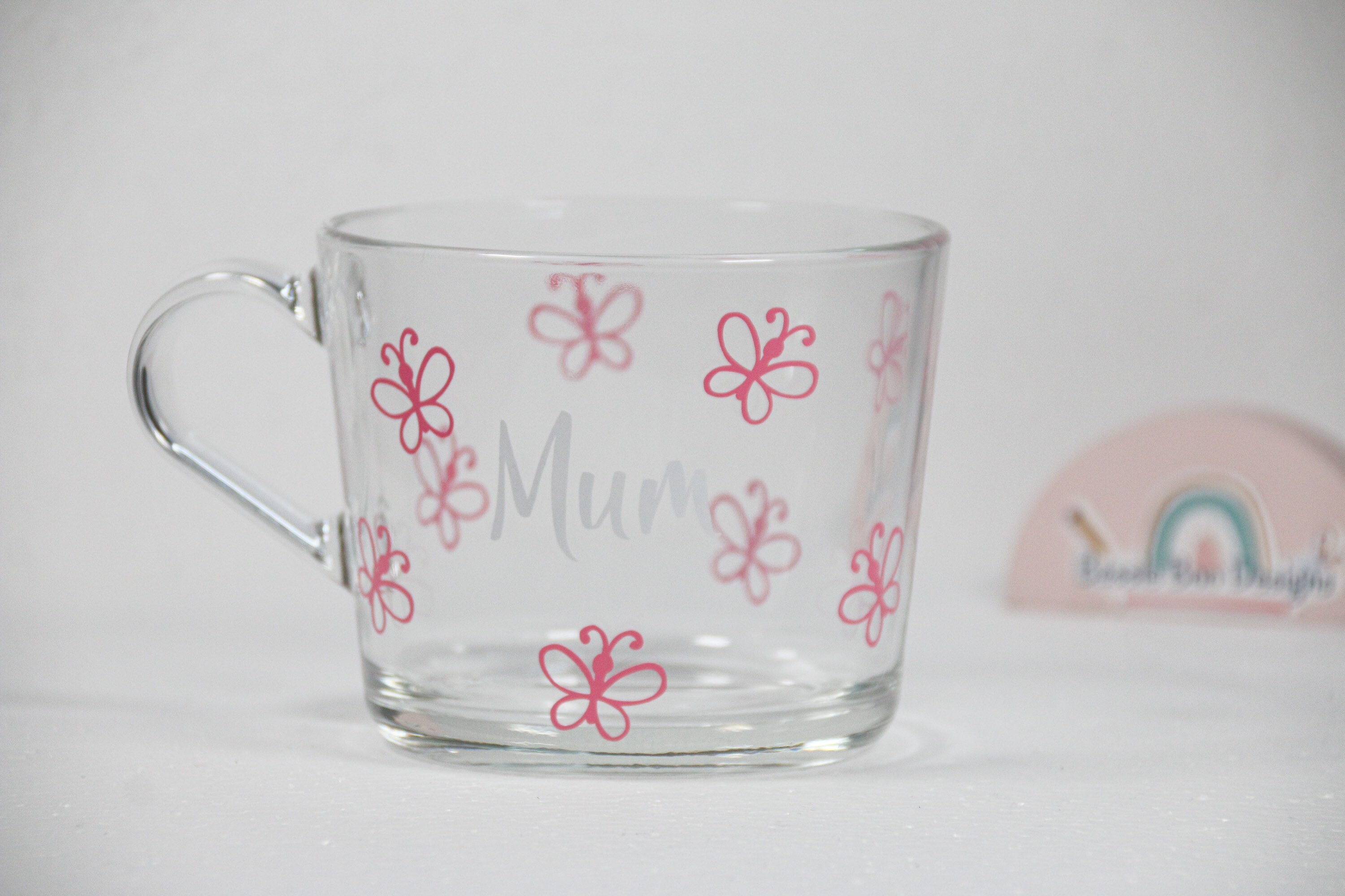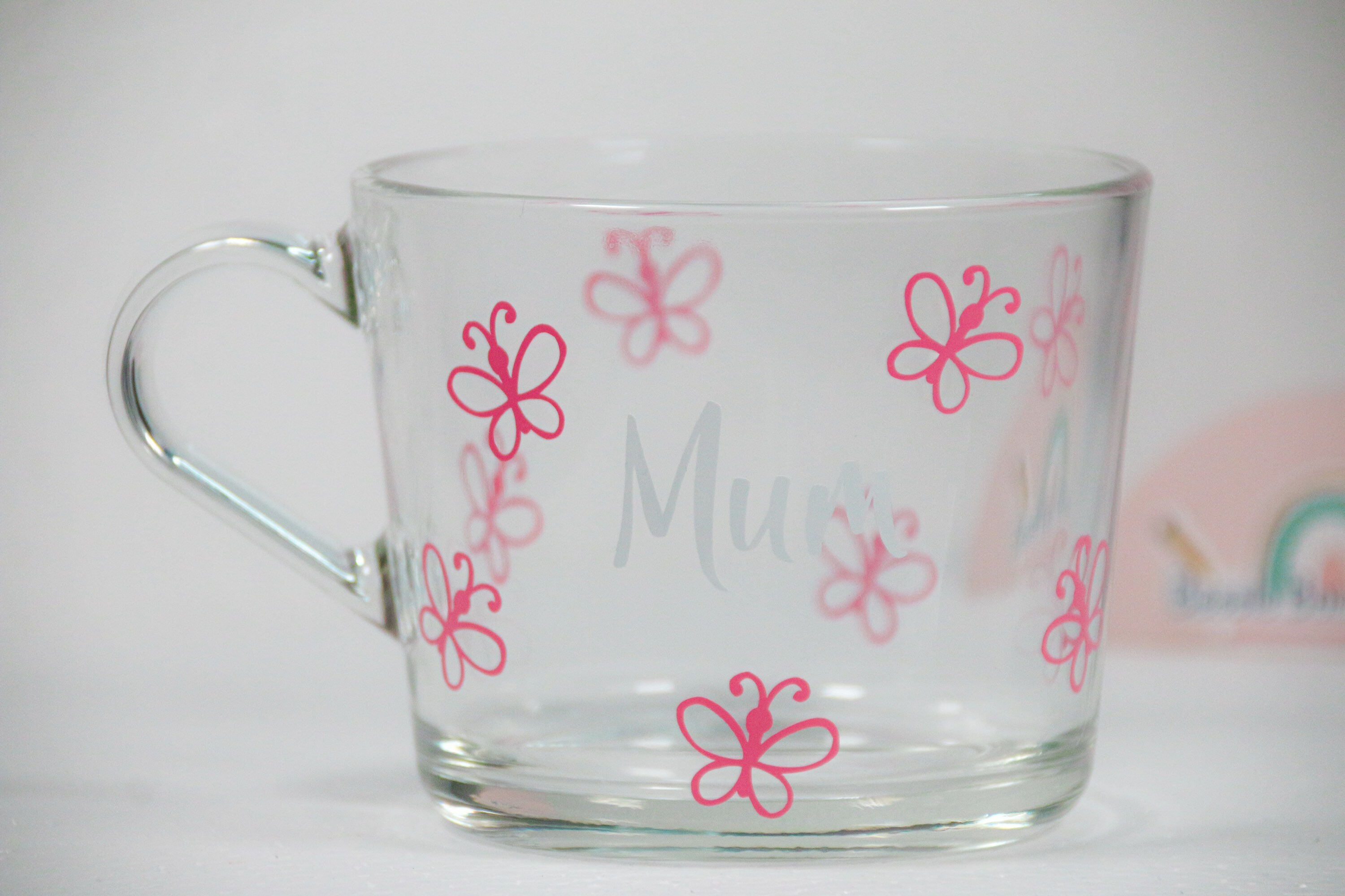 Gift Ideas - Butterfly Glass Mug | Personalised Glass | Mothers Day Gift | Gift for Her | Gift for Grandma | Gift for Mummy