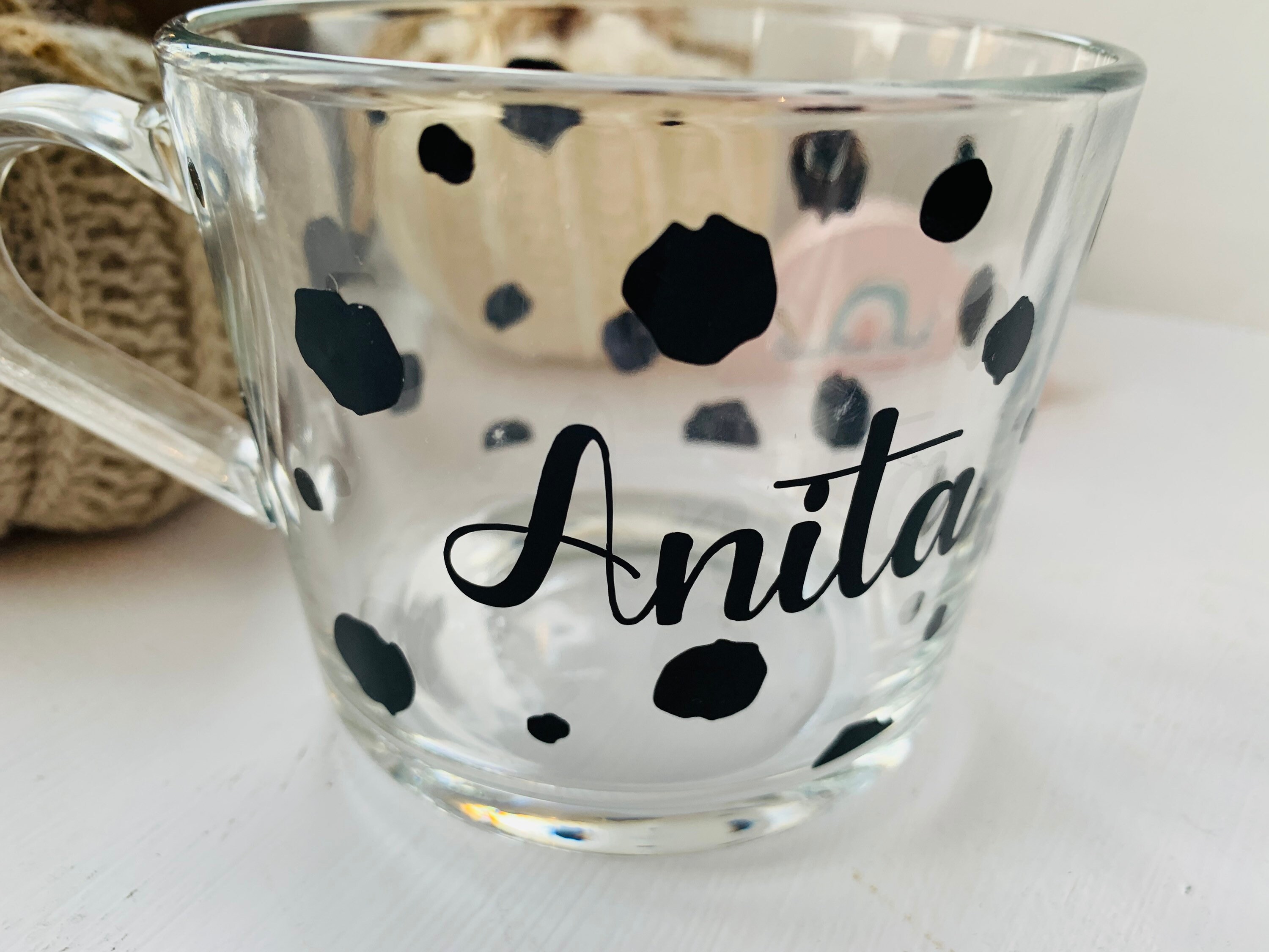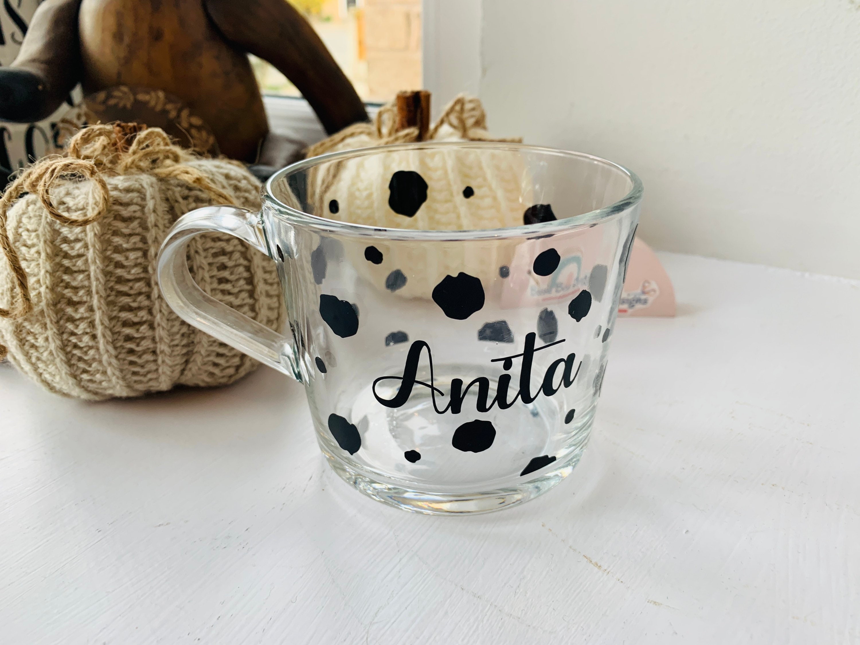 Gift Ideas - Dalmatian Print Glass Mug| Dalmatian Print Mug | Gifts for her | Personalised Mug | Dog Lovers mug
