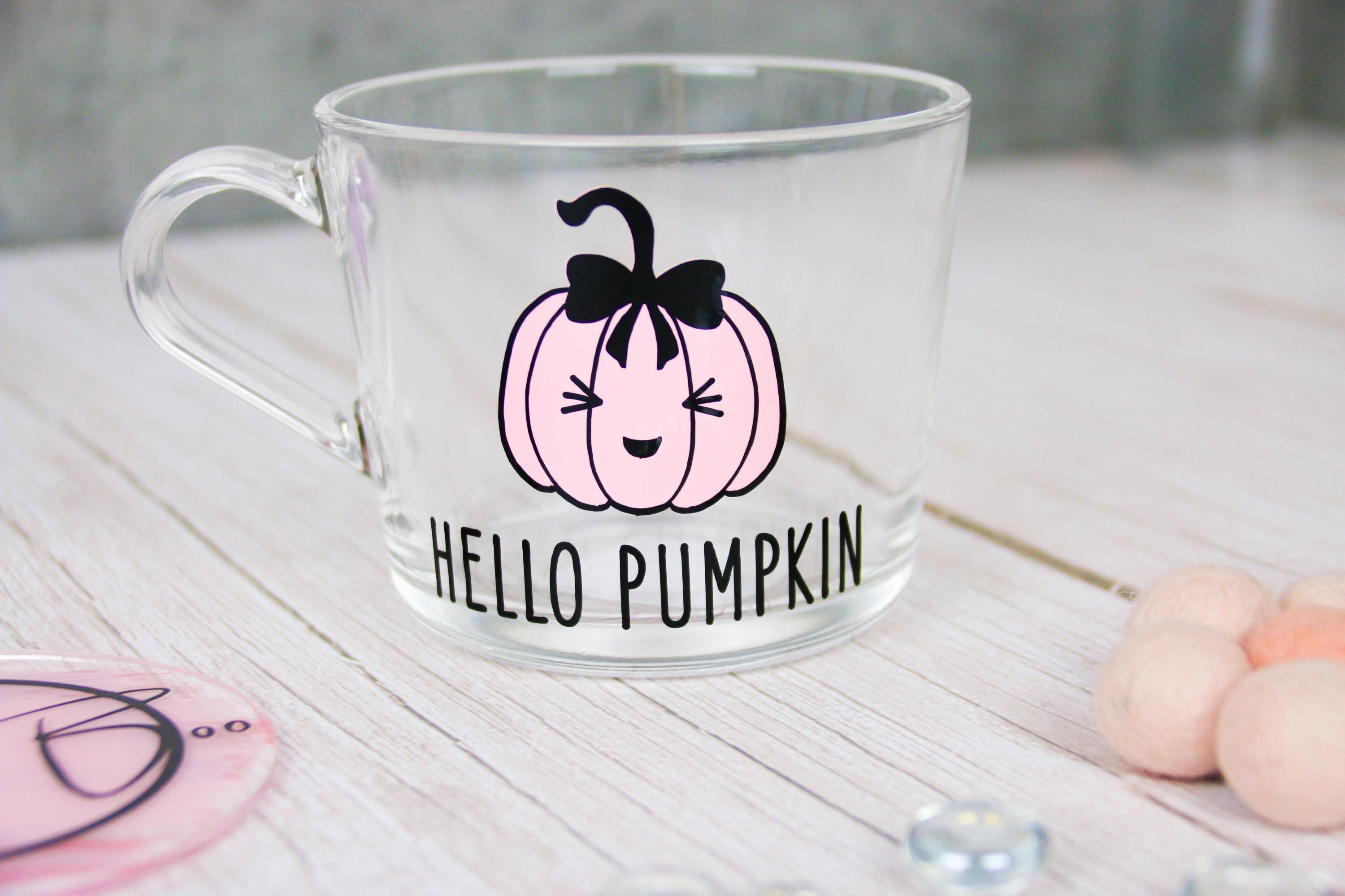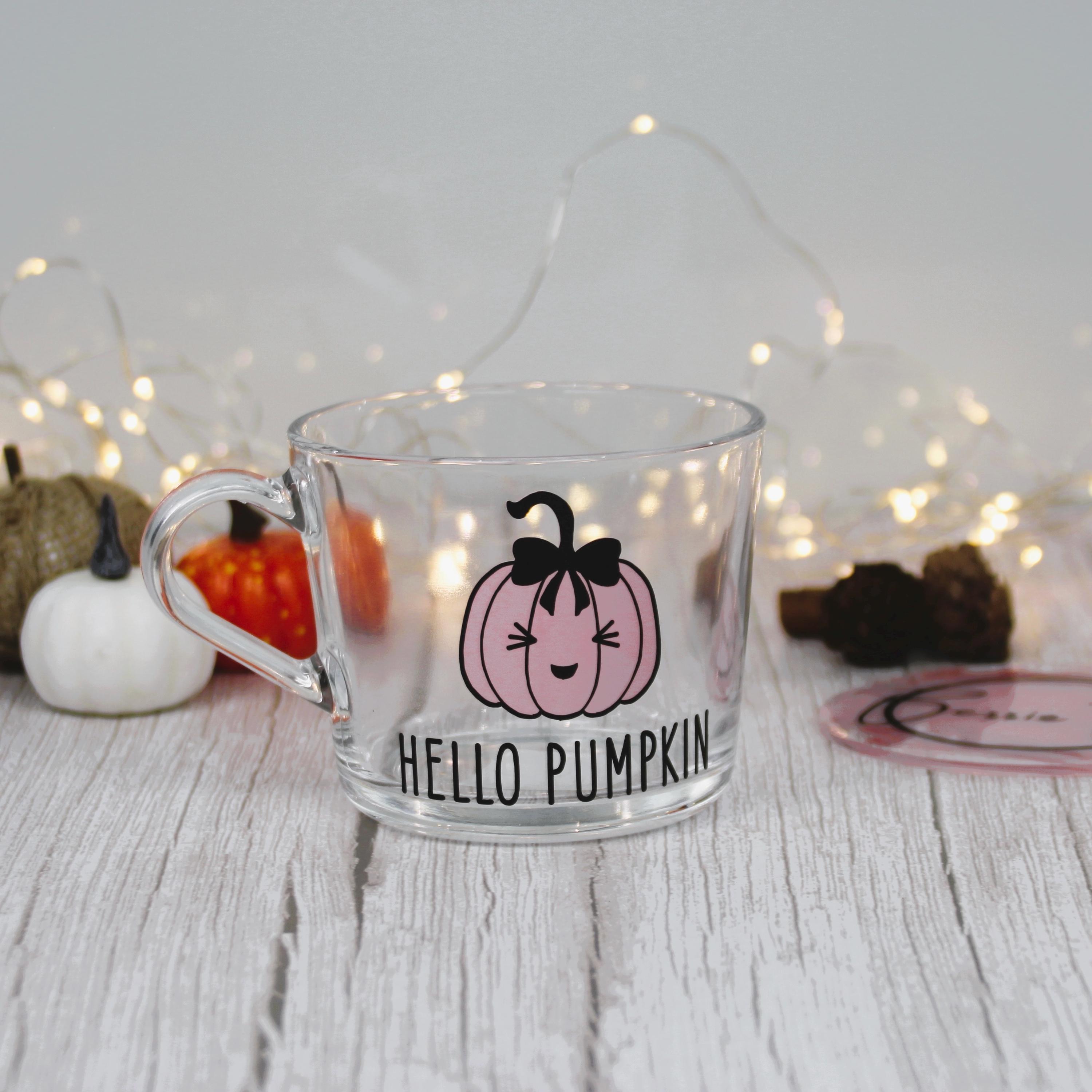 Gift Ideas - Halloween Glass Mug | Pink Halloween Mug | Cute pumpkin Mug | hello pumpkin | Personalised Halloween Glasses |