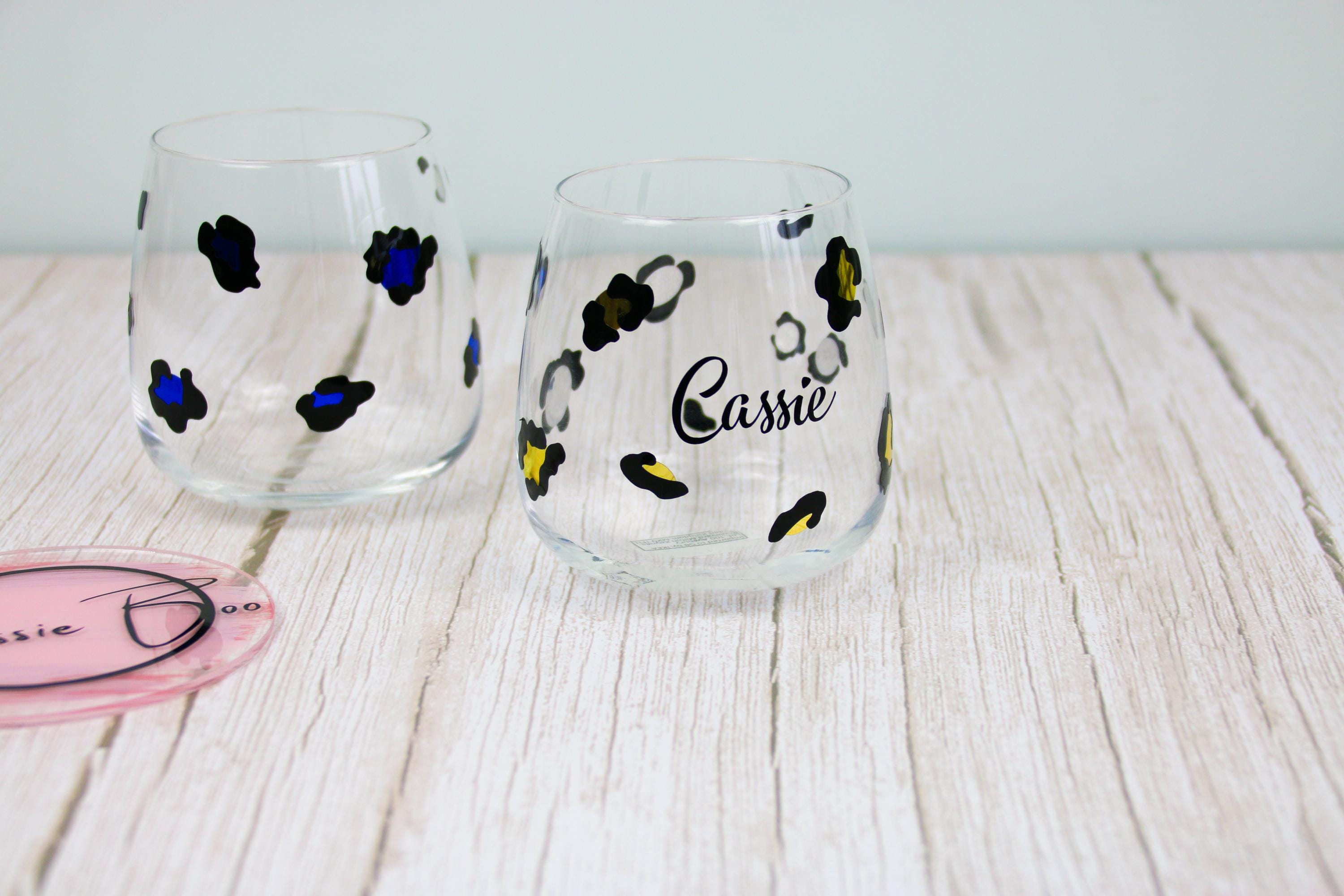 Choose between a glass tumbler, mug, pint glass, wine glass, gin glass or latte mug, beautifully personalised with handmade vinyl decal made in a your chosen colour.