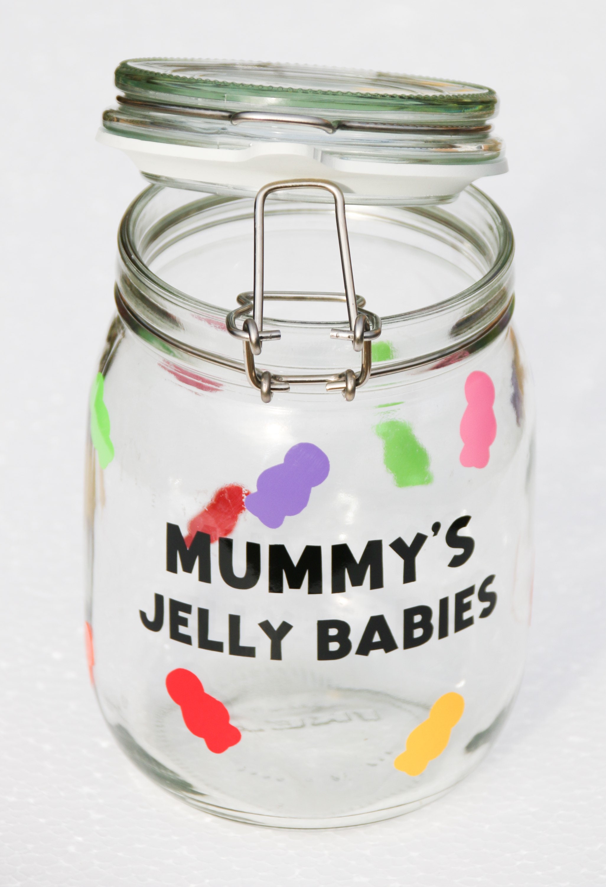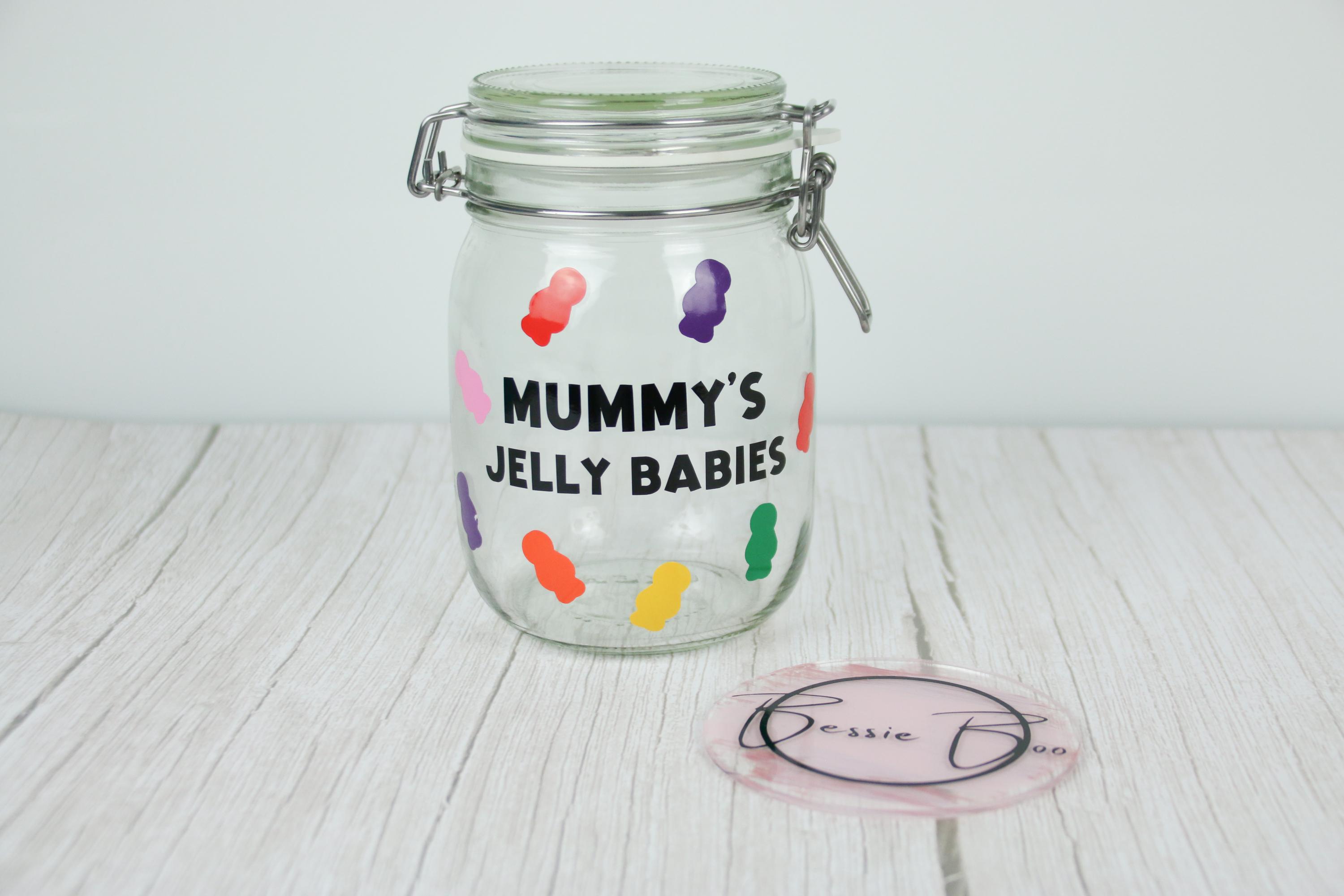 Beautiful Glass Jar customised with the highest quality vinyl decal for all those jelly babie lovers out there.