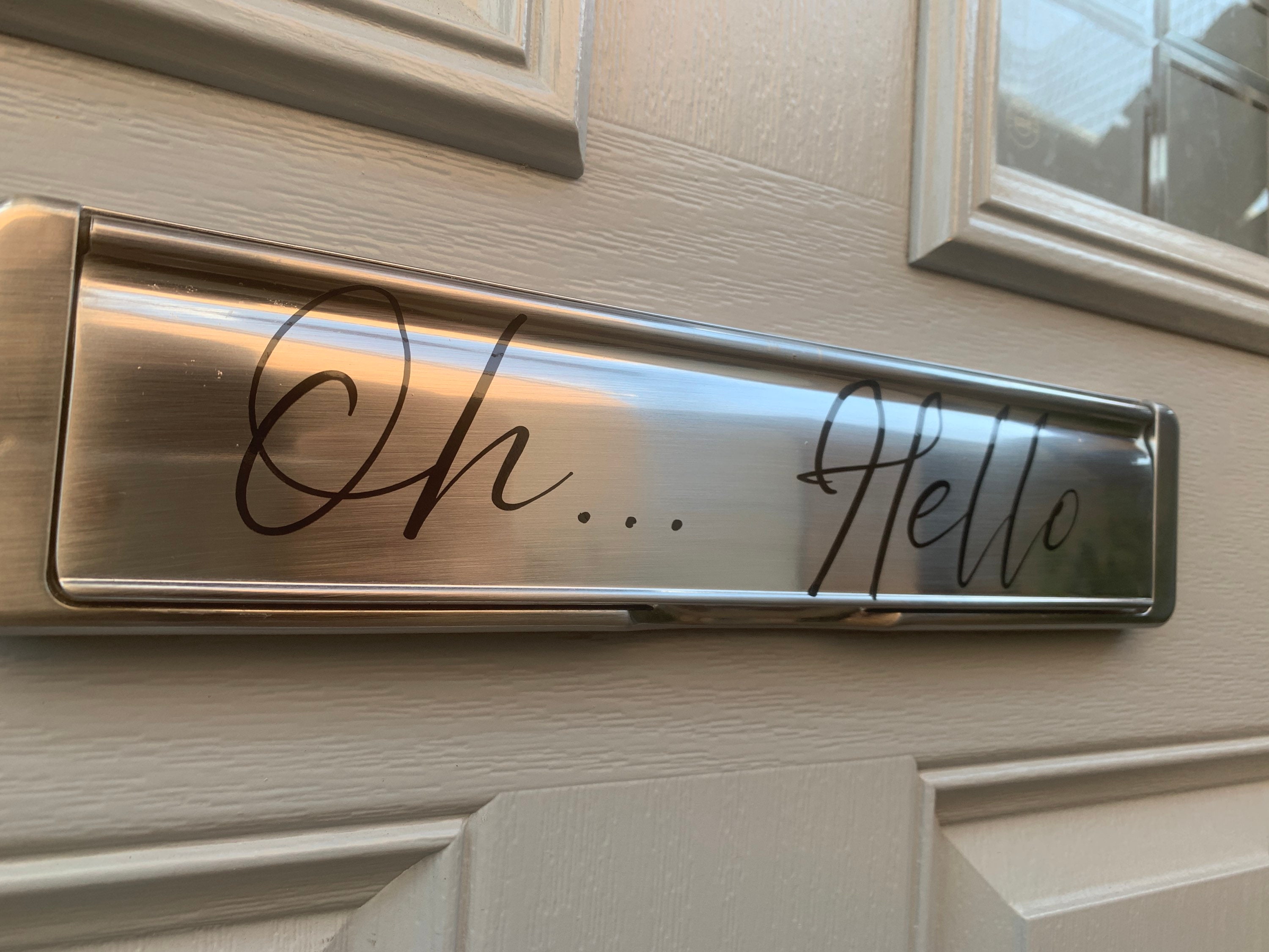 Letterbox Decals | Oh Hello Letterbox Label | Postbox Decal | Custom Made Vinyl Labels | Self-Adhesive Personalised Labels
