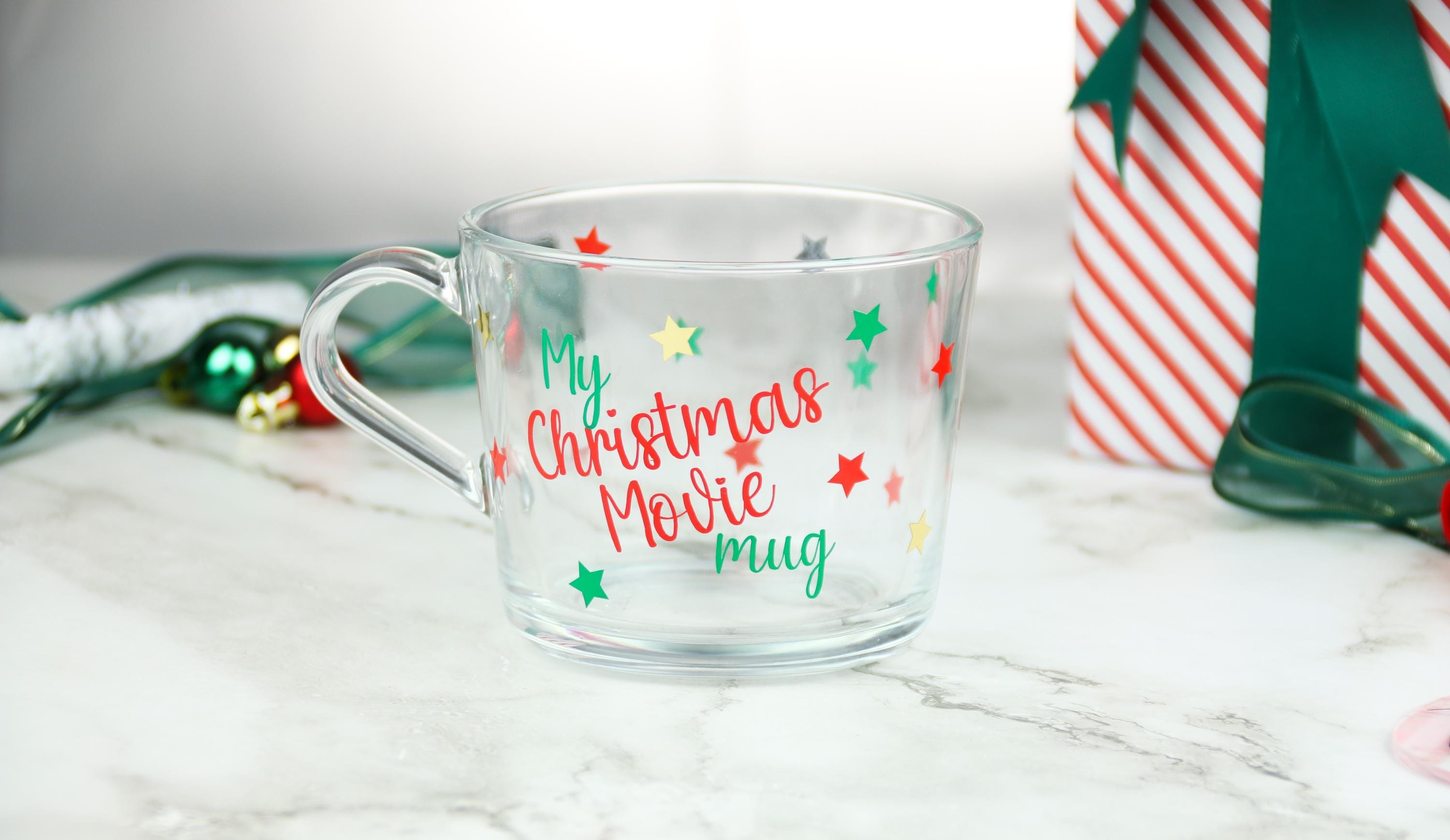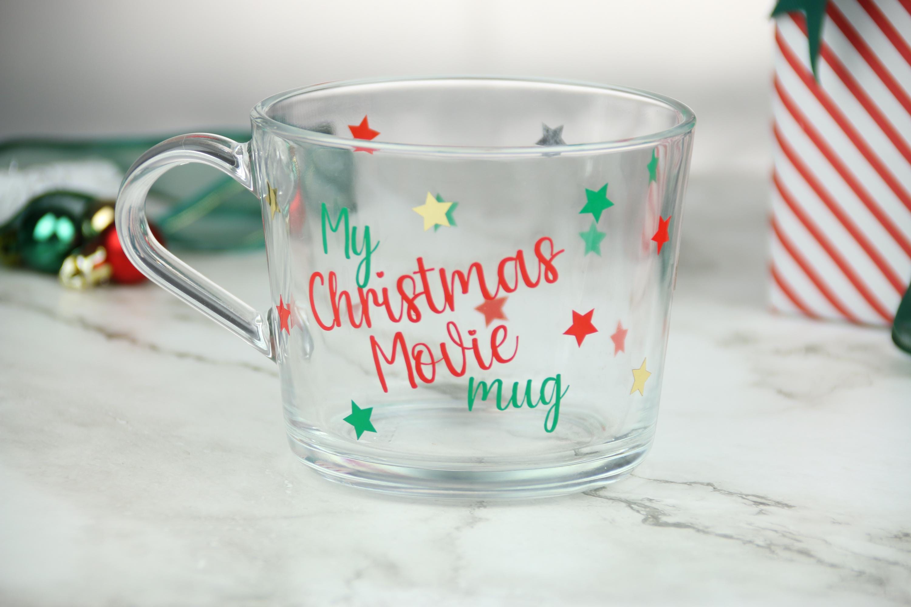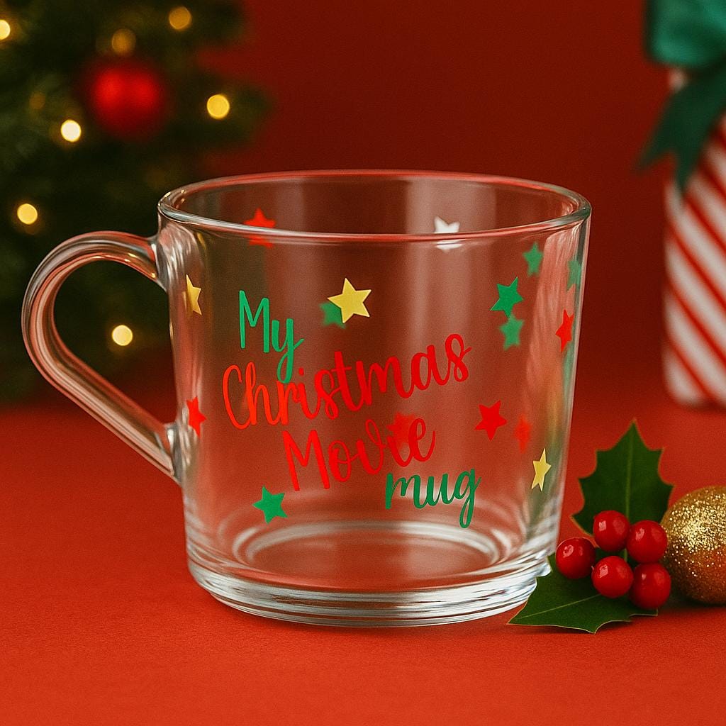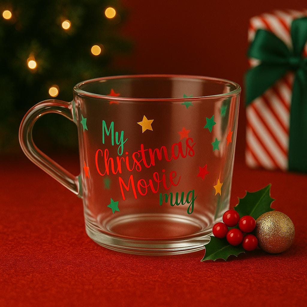 Get cozy this holiday season with our charming "My Christmas Movie Mug." Perfect for sipping hot cocoa, tea, or your favorite holiday beverage while binge-watching Christmas classics. This clear glass mug is adorned with vibrant red, green, and gold stars, adding a festive touch to your drinkware collection. Whether it's a gift for a loved one or a treat for yourself, this mug will surely bring warmth and joy to your holiday moments. Durable, dishwasher safe, and designed for all your holiday drink needs, this mug is a must-have for any Christmas movie marathon.