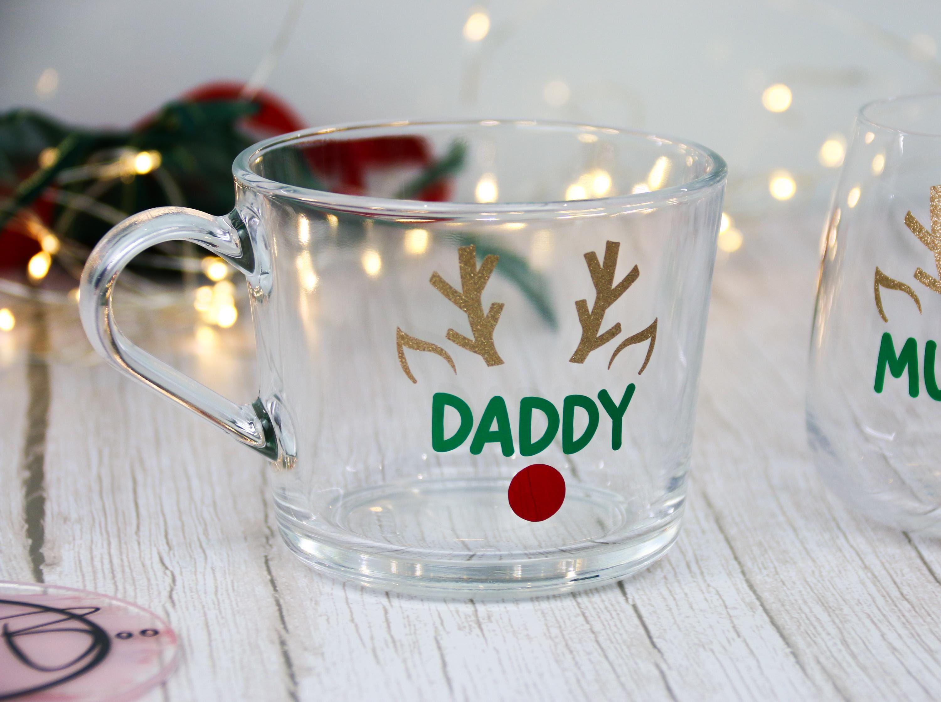 Bring a touch of festive cheer to your holiday mornings with this charming personalised glass mug! Featuring a delightful reindeer antler design, this mug can be customised with any name, making it a perfect Christmas gift for family, friends, or even yourself. The sturdy glass construction ensures durability, while the vibrant print adds a merry touch to your favorite beverages. Ideal for coffee, tea, or hot chocolate, this mug is both practical and festive.
