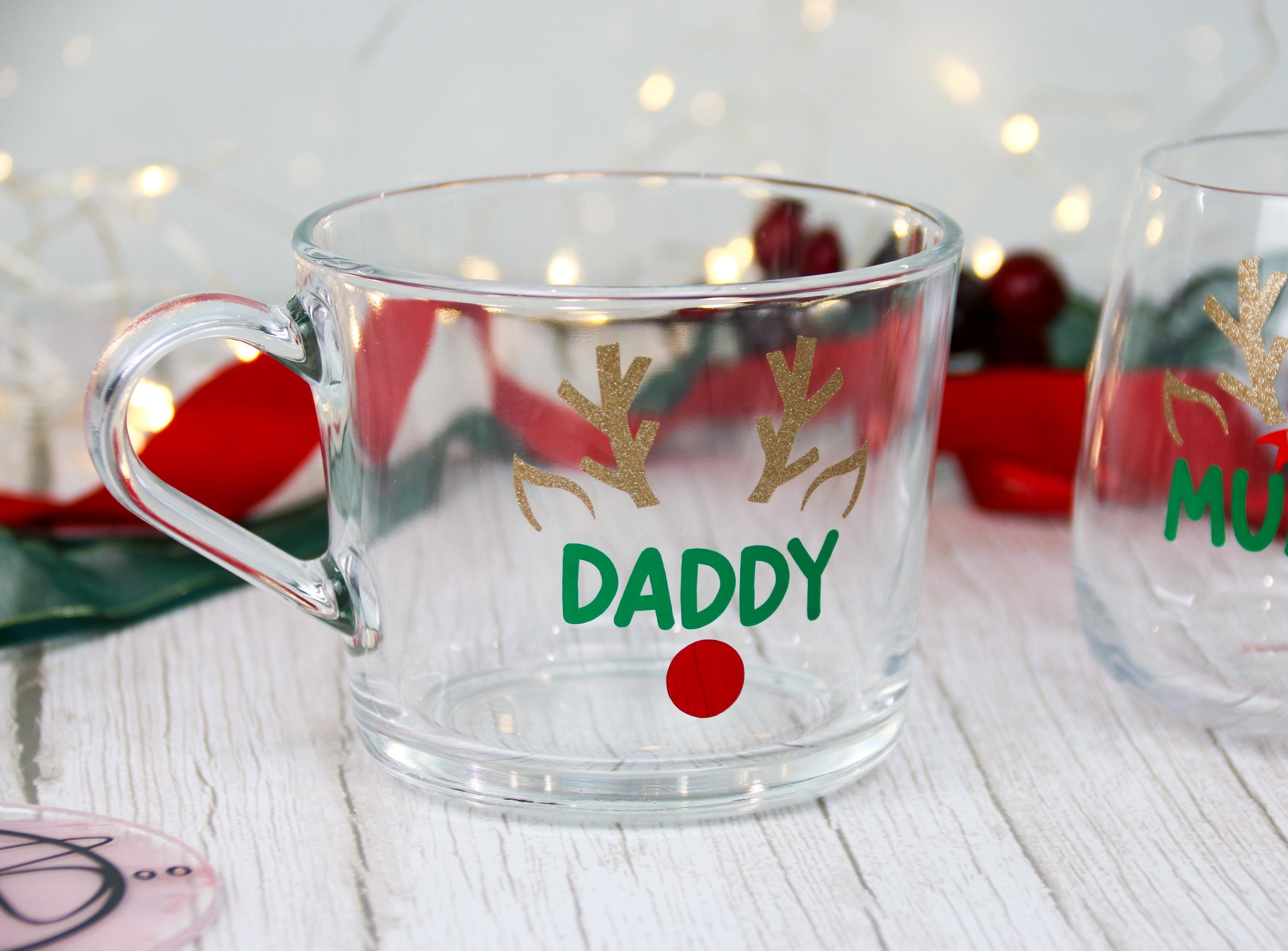Personalised Christmas Glass Mug - Reindeer Antlers with Name - Holiday Coffee Cup