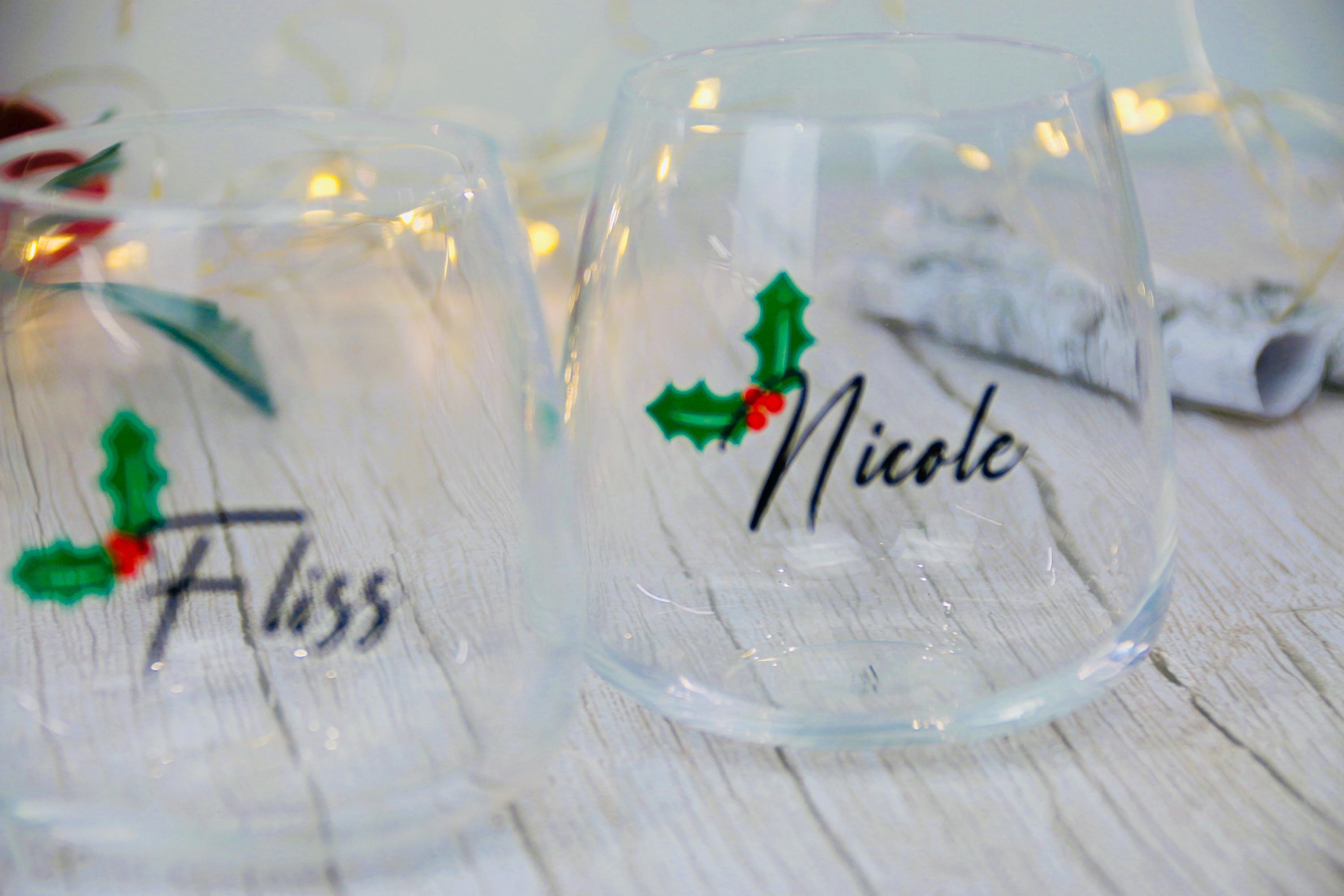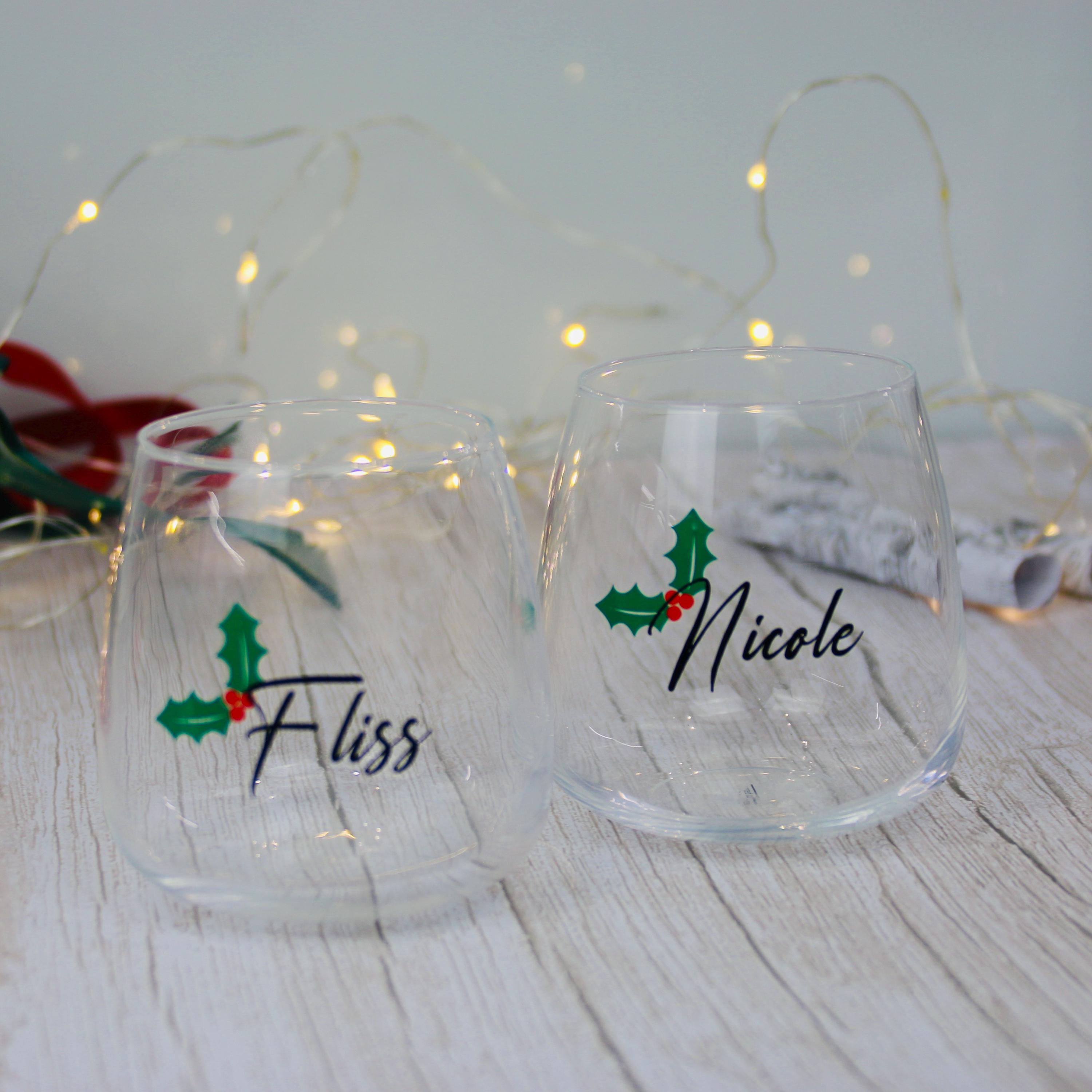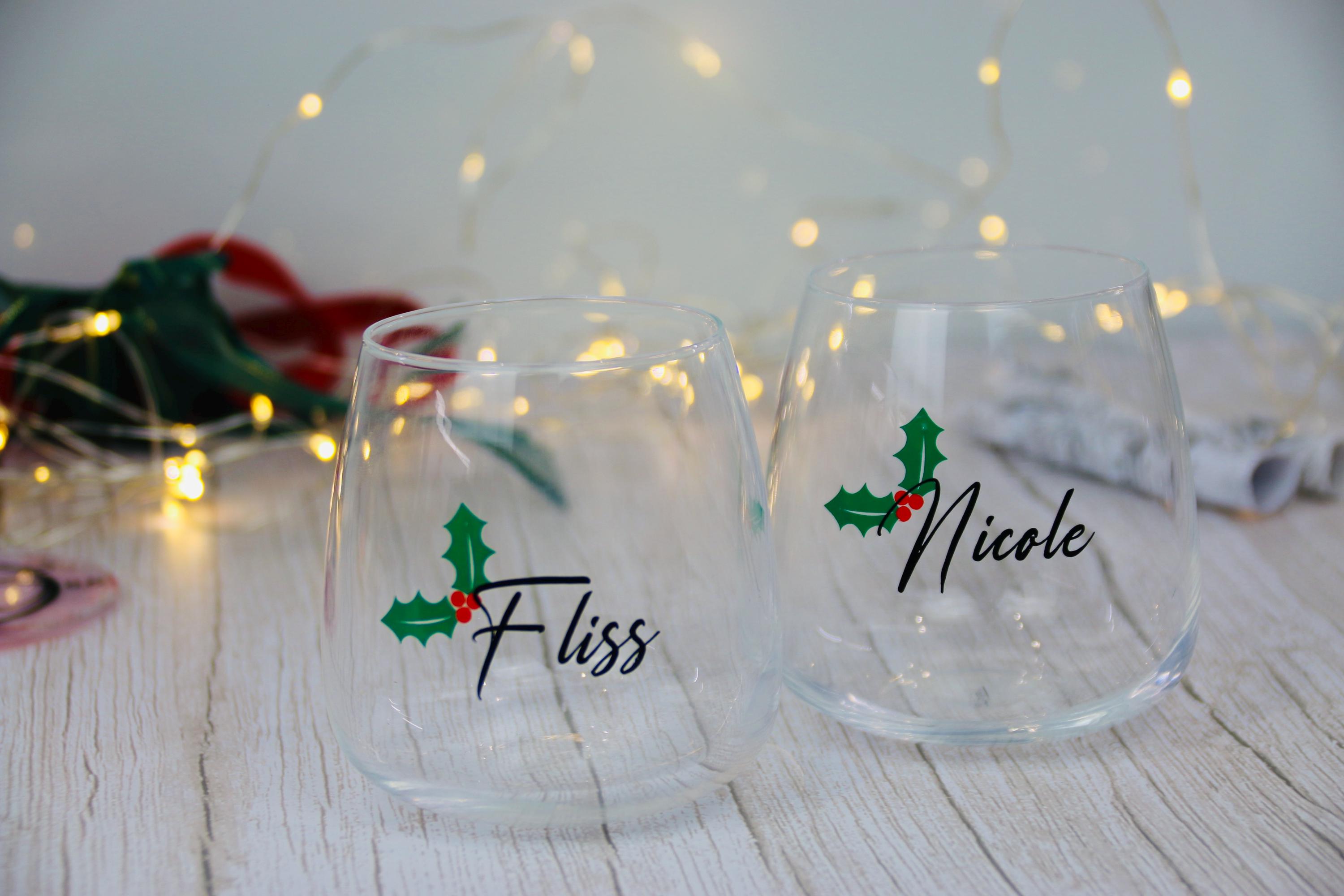 Personalised Christmas Holly Glass | Glass Mug - Wine - Tumbler - Latte - Pint - Gin | Gift