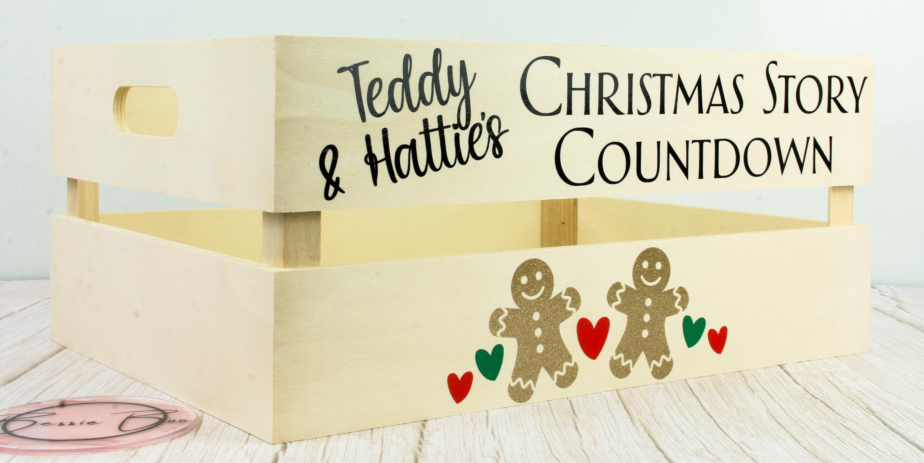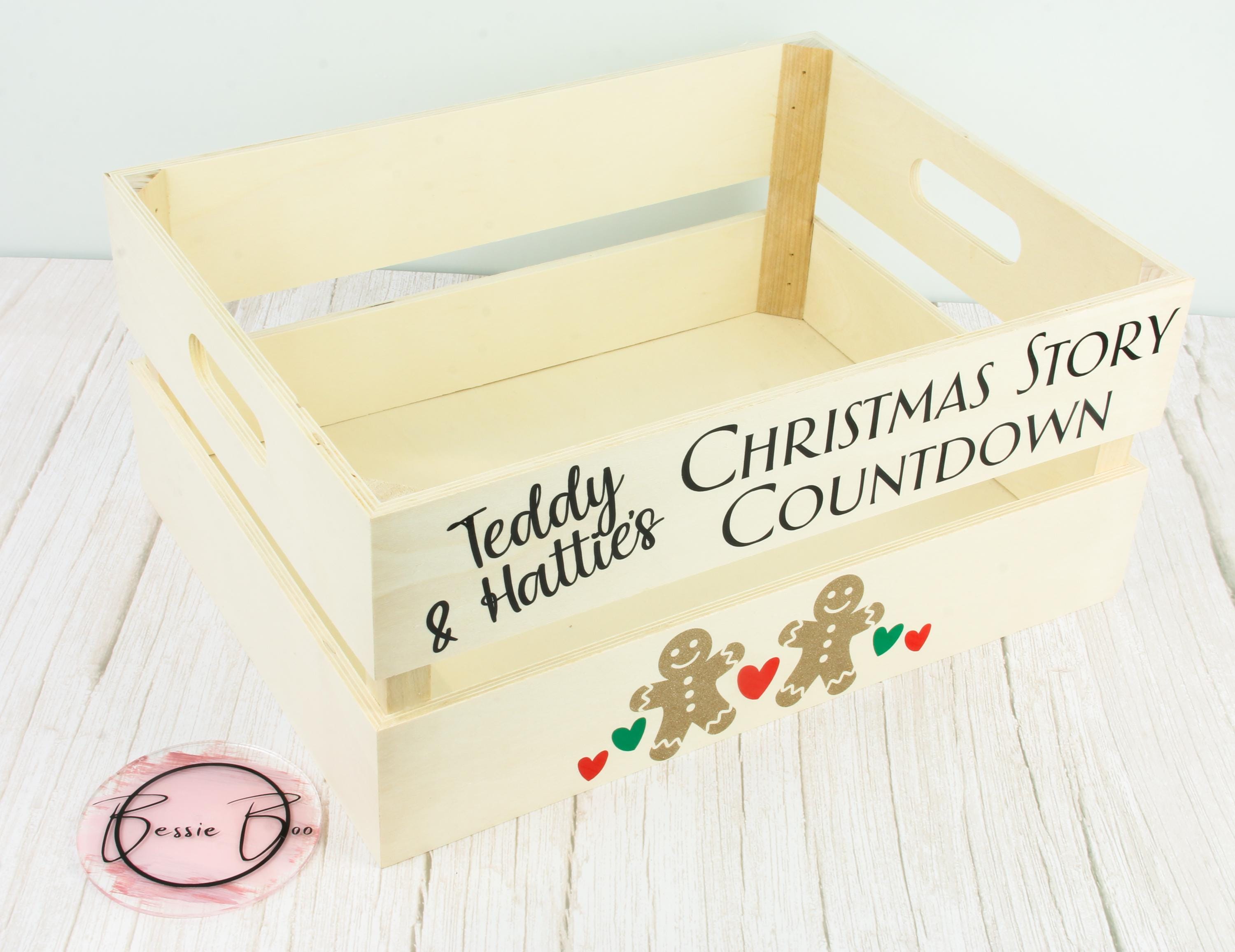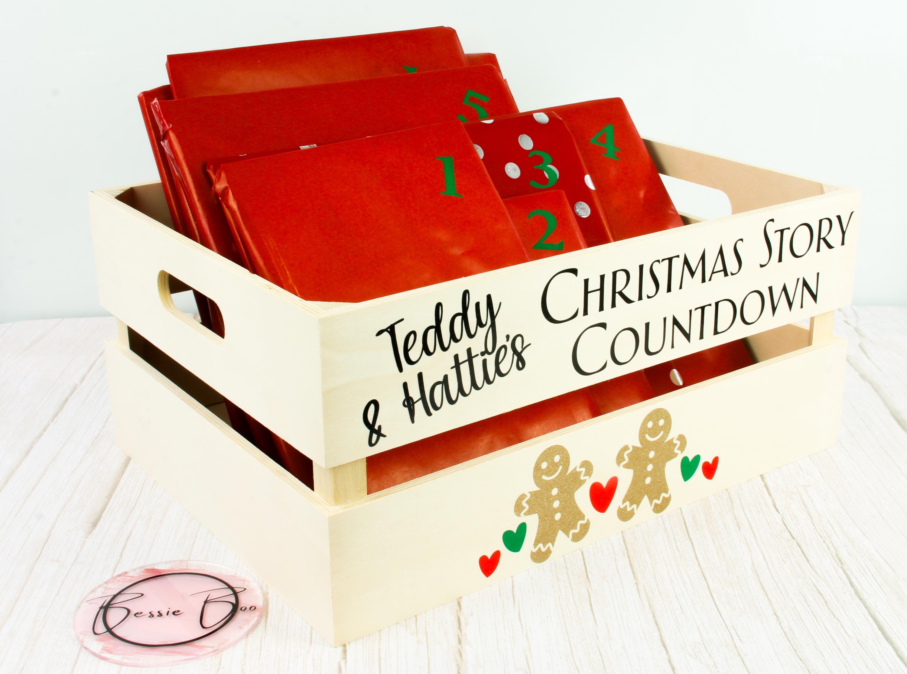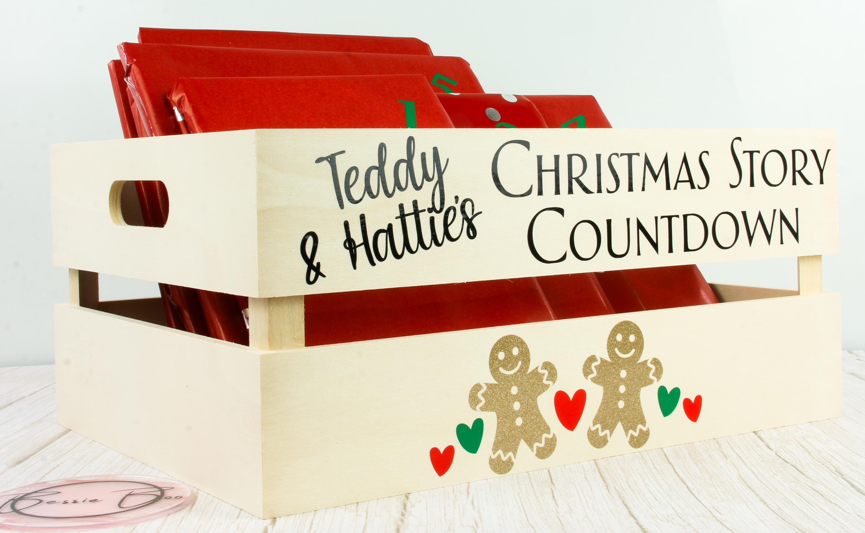 Personalised Christmas Story Countdown Crate - Advent Book Box with Gingerbread Design