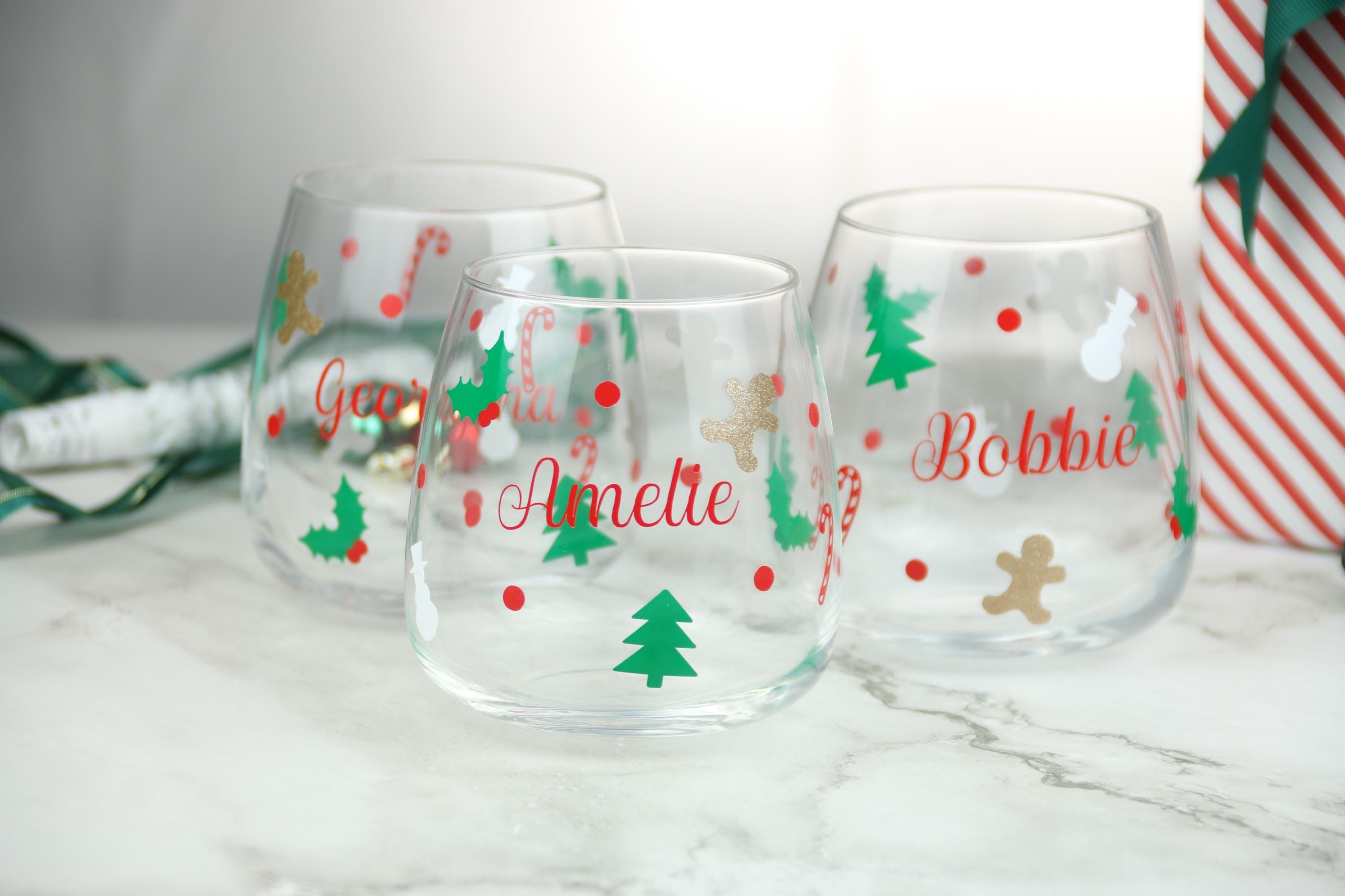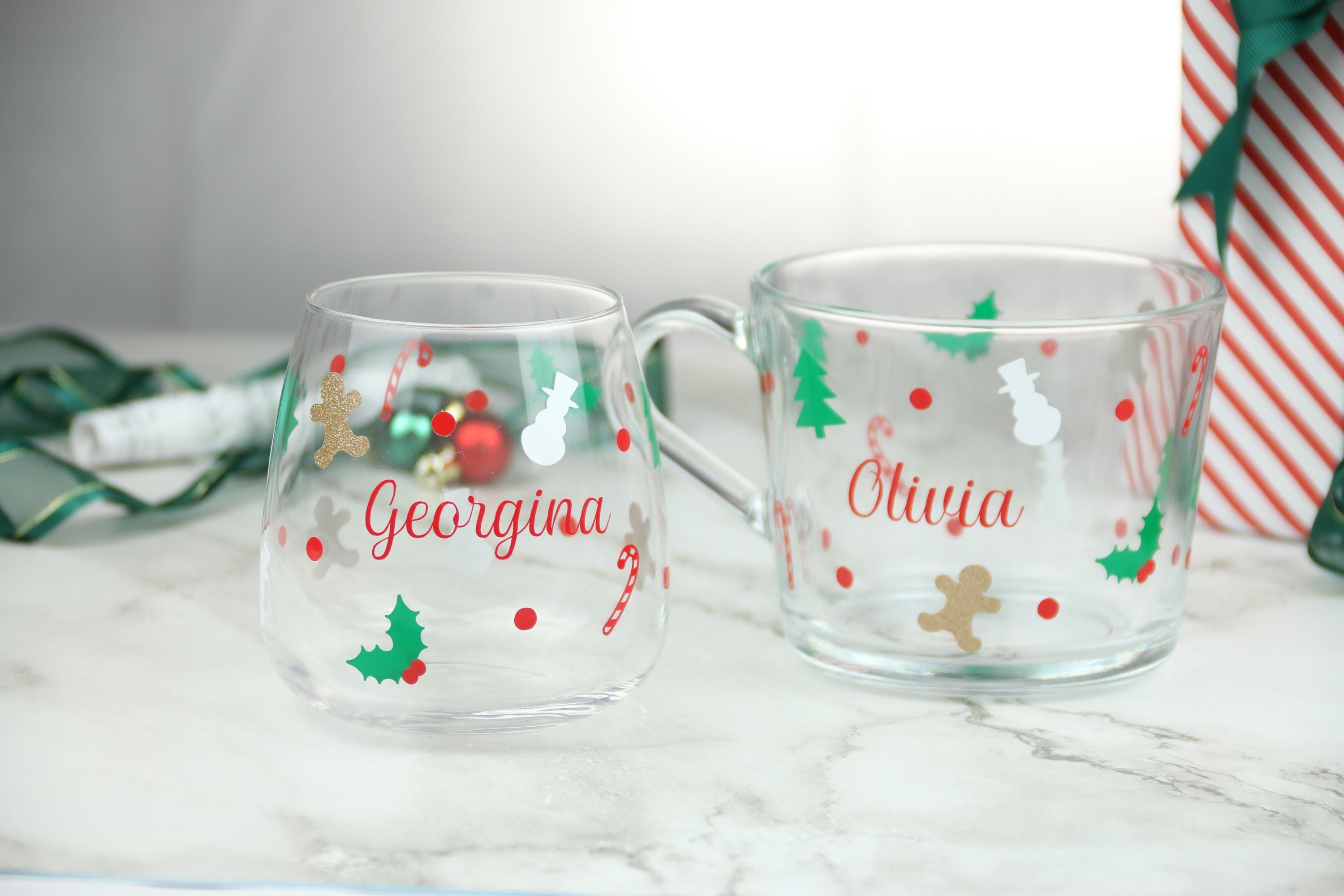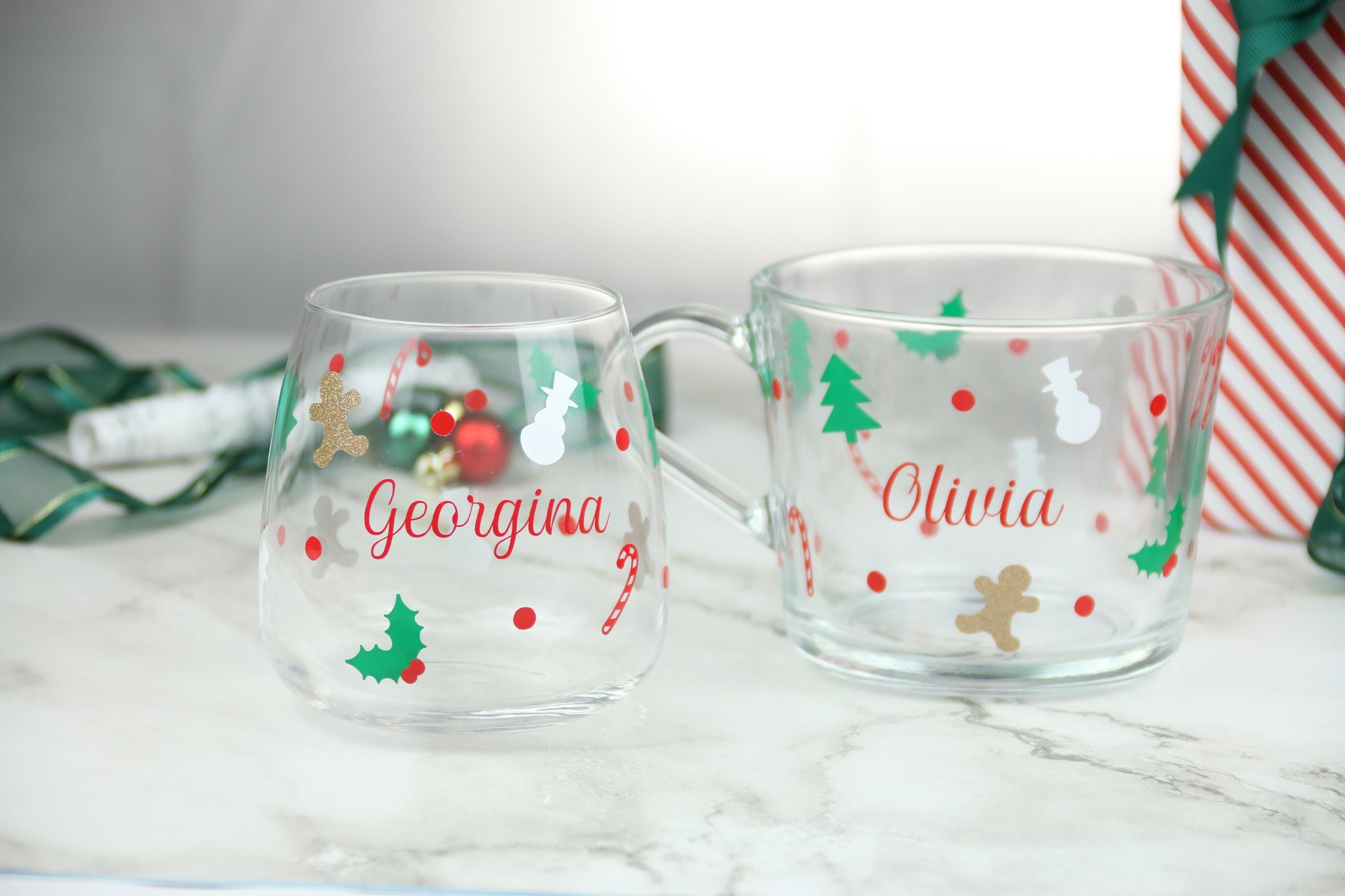 Celebrate the joy of Christmas with this beautifully personalised tumbler, perfect for sipping your favorite holiday drink in style! This glass is adorned with delightful festive icons, including candy canes, holly, snowmen, Christmas trees, and a touch of glitter with a golden gingerbread man. Each glass is customized with your chosen name in a vibrant red script, making it a wonderful gift for family, friends, or even yourself. Ideal for cozy nights in or holiday gatherings, this Christmas-themed glass adds a festive touch to any drink. Dishwasher safe, though handwashing is recommended to keep the design looking its best. Add a special, personal flair to your holiday celebrations!