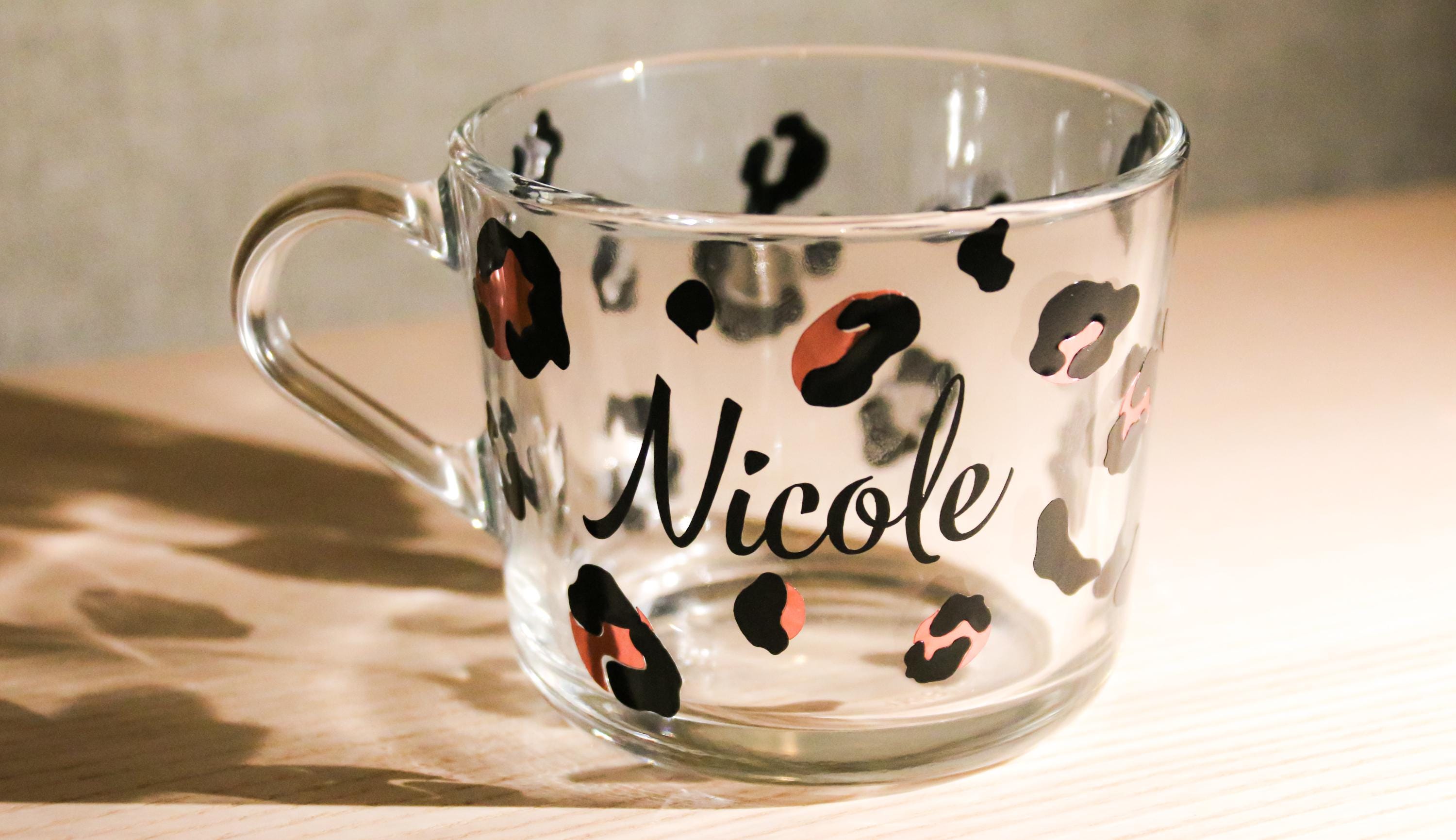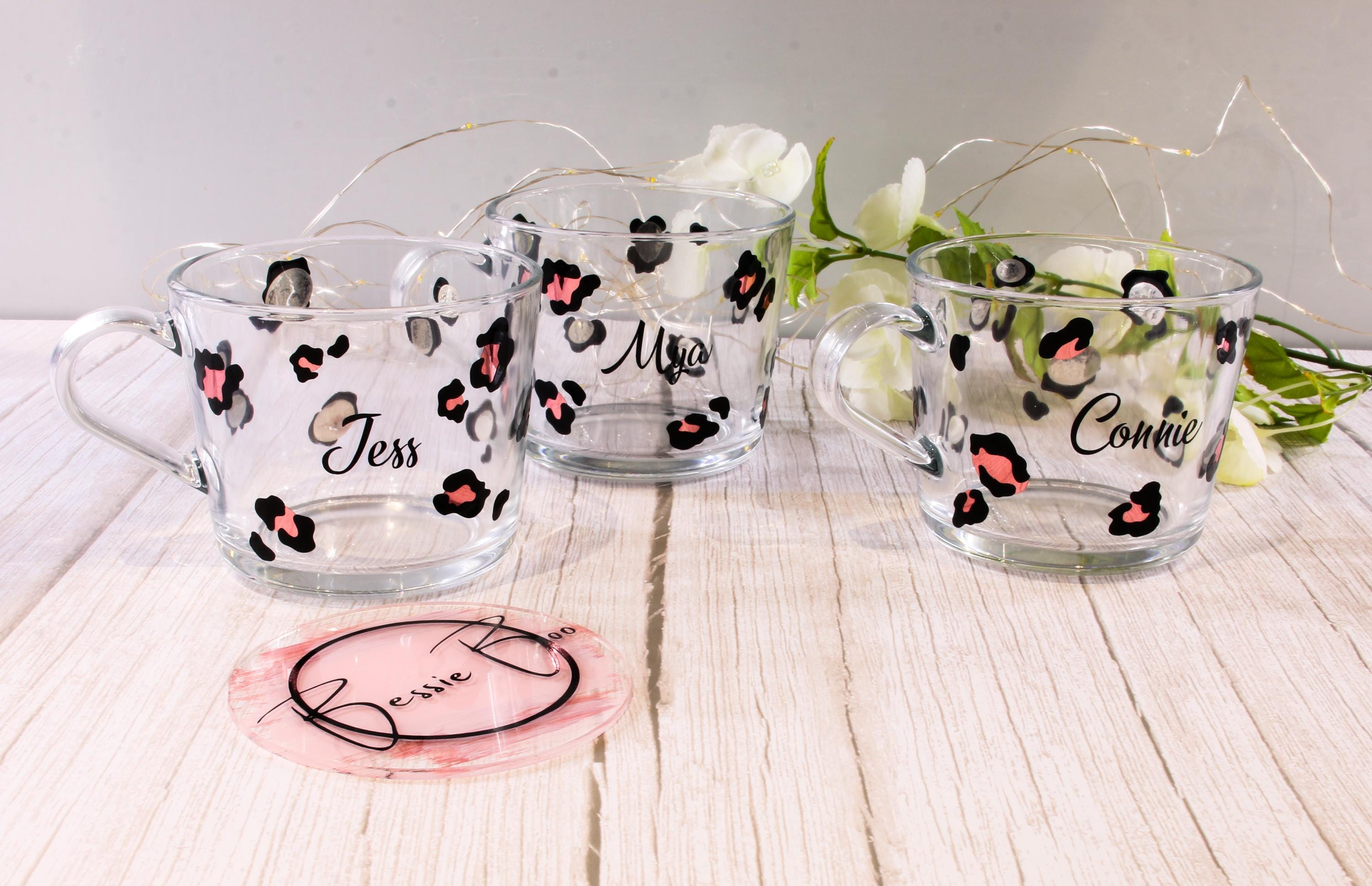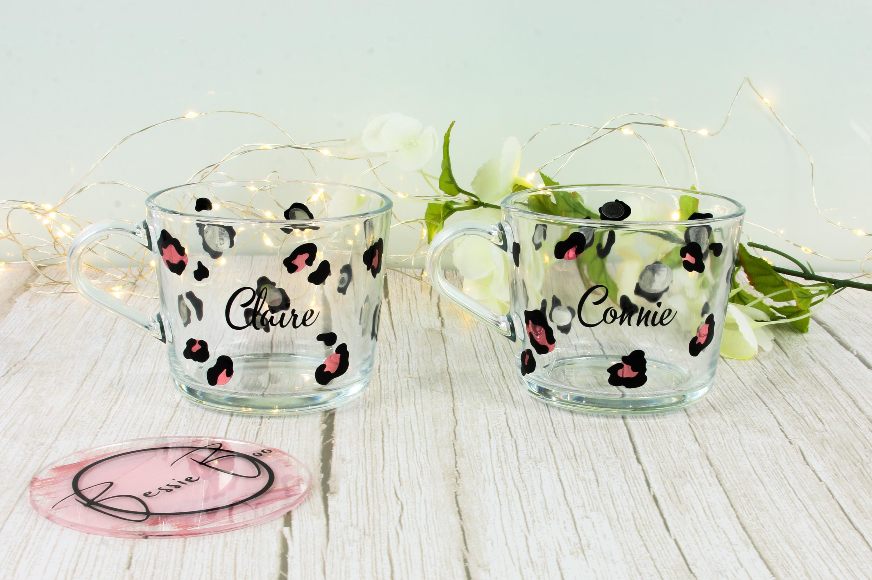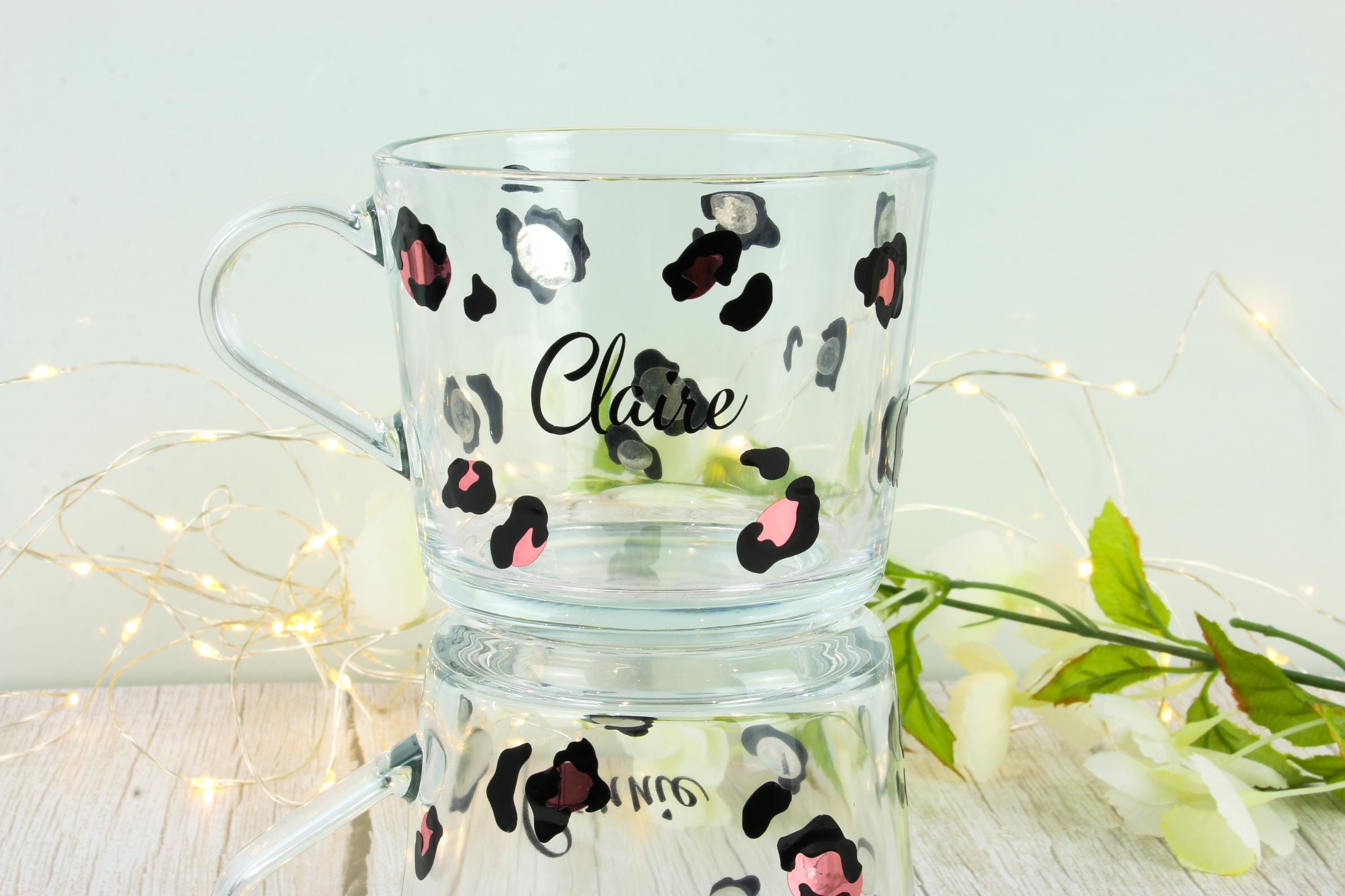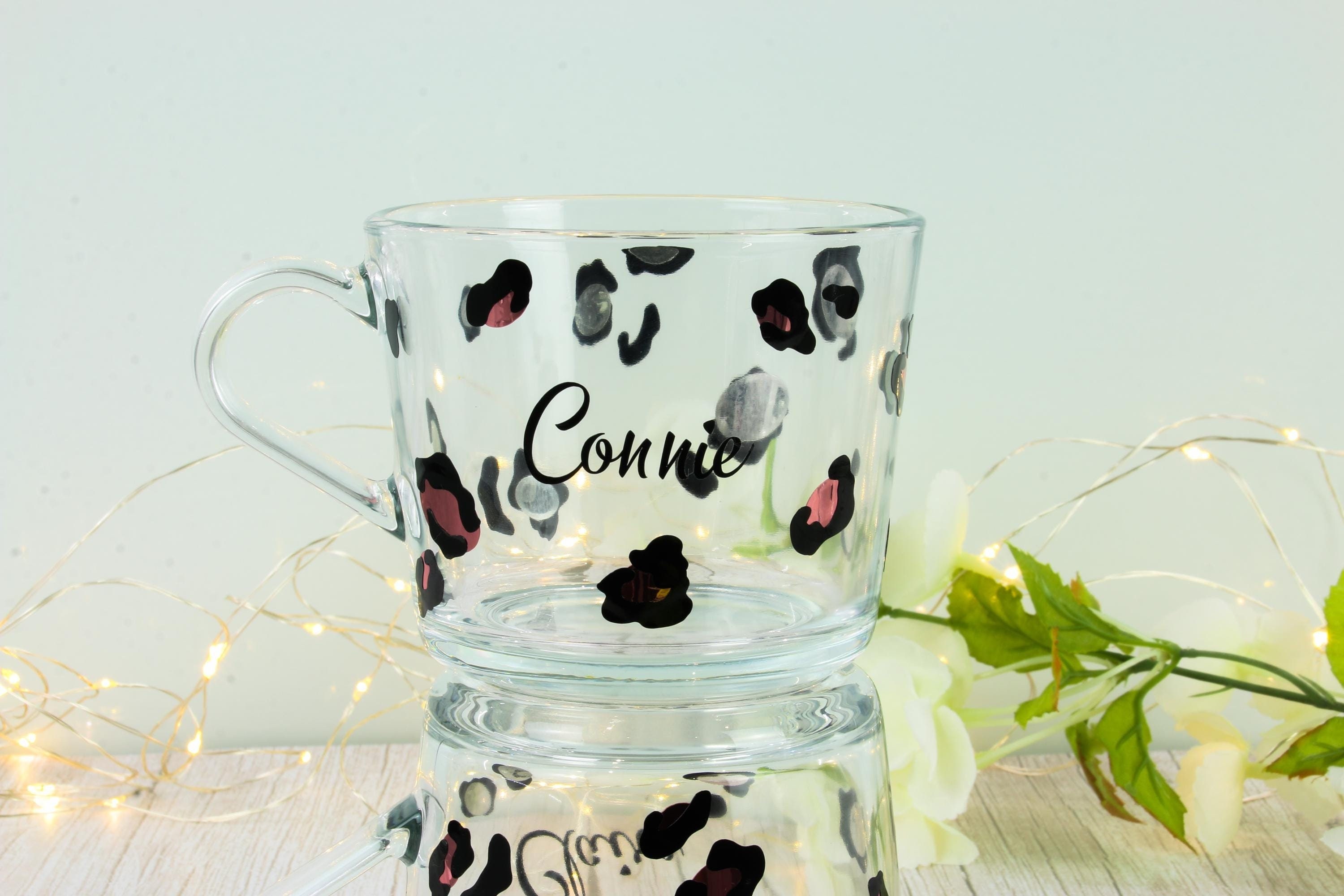 Personalised Leopard Print Glass Mug - Custom Name Glass Cup for Gifts or Special Occasions