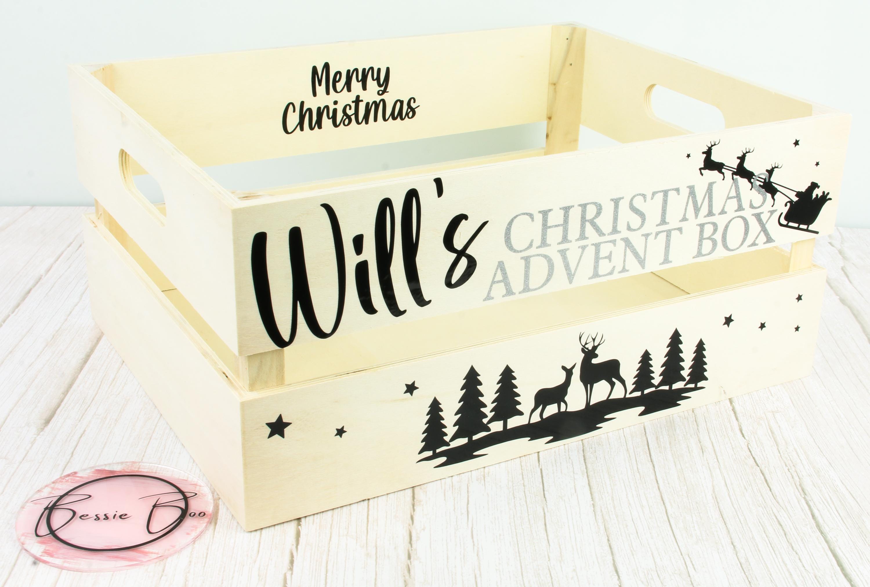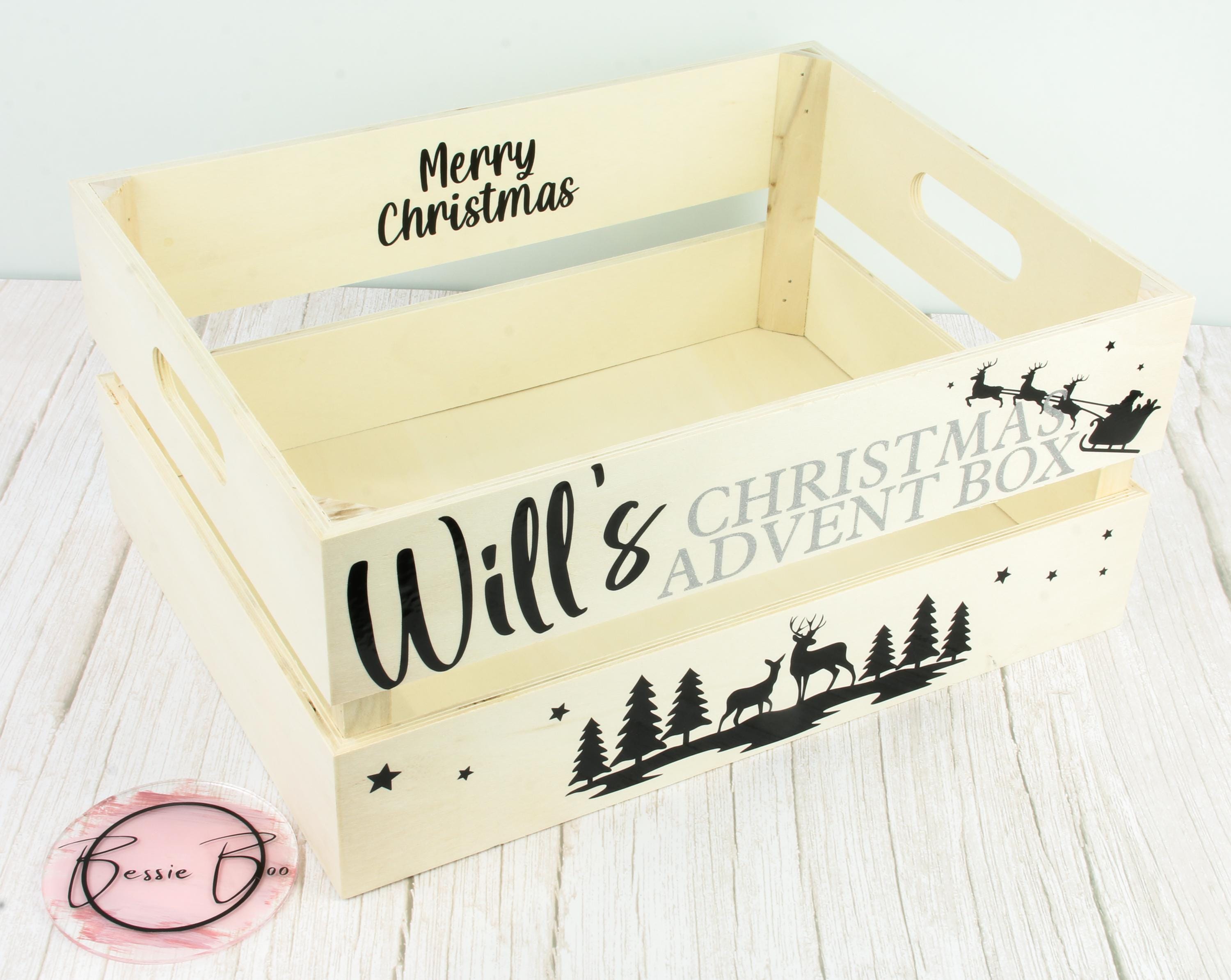 Personalized Christmas Advent Box – Woodland Santa Reindeer Design
