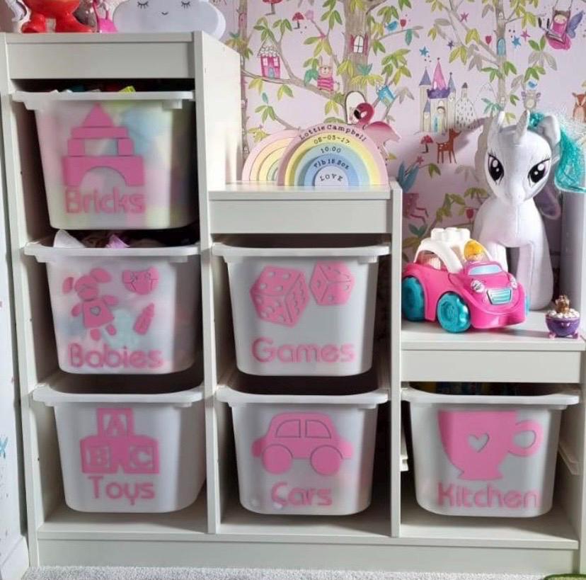 Custom-made Vinyl Transfer Labels to fit any toy storage unit or system you have (with a smooth surface - please note they will not adhere to canvas or fabric with a textured surface).
