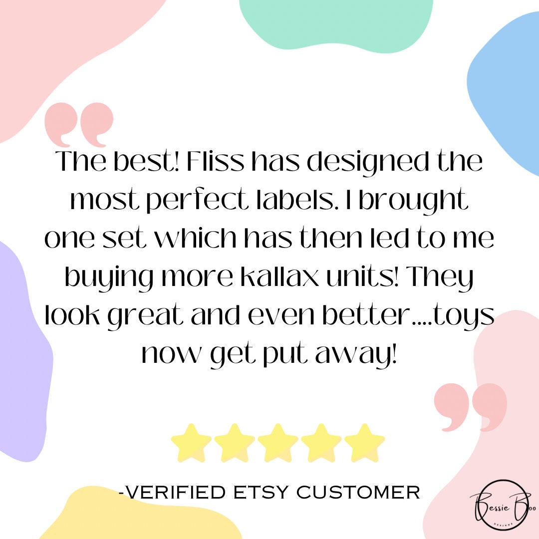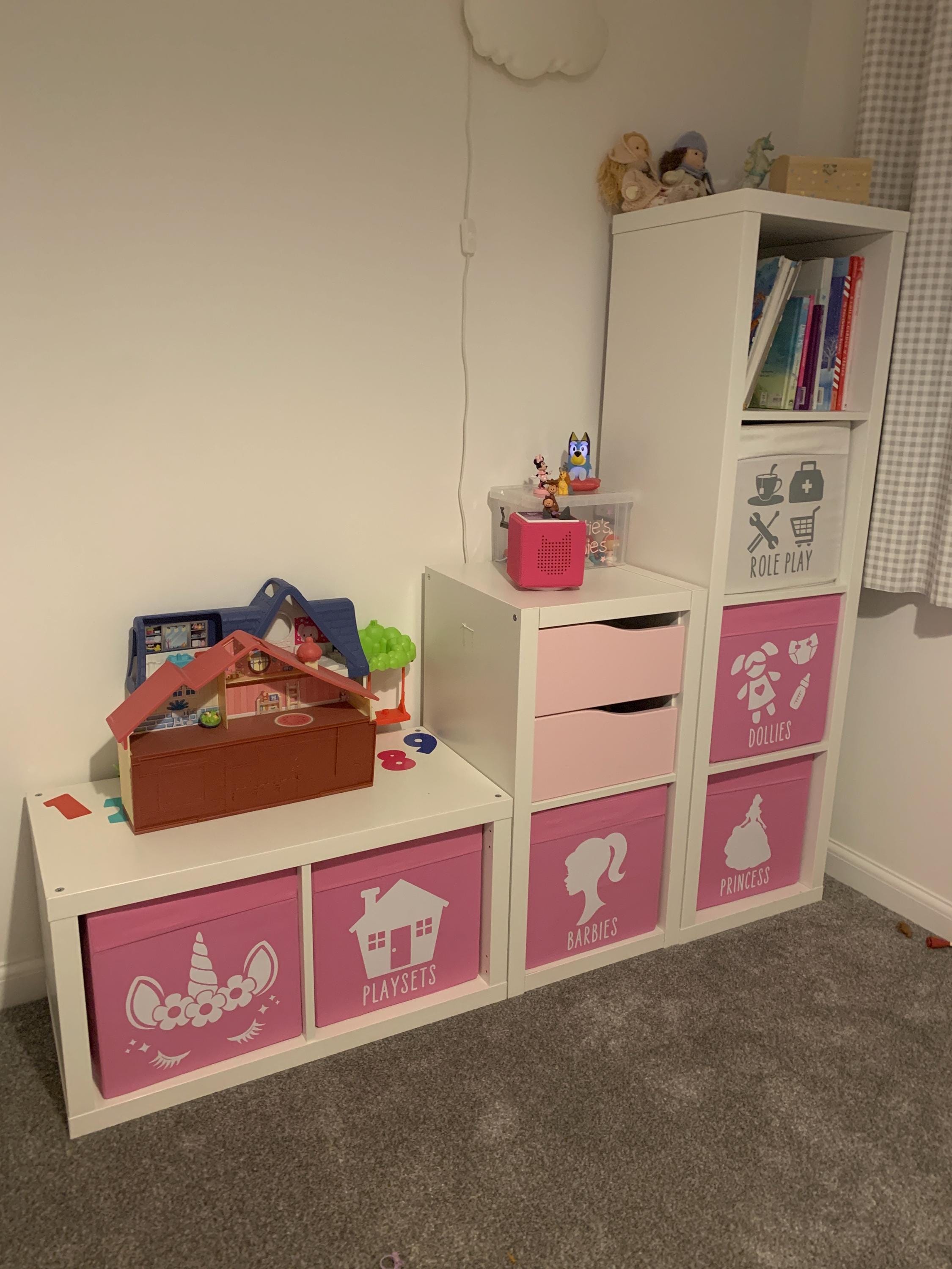 Custom-made Vinyl Transfer Labels to fit any toy storage unit or system you have (with a smooth surface - please note they will not adhere to canvas or fabric with a textured surface).