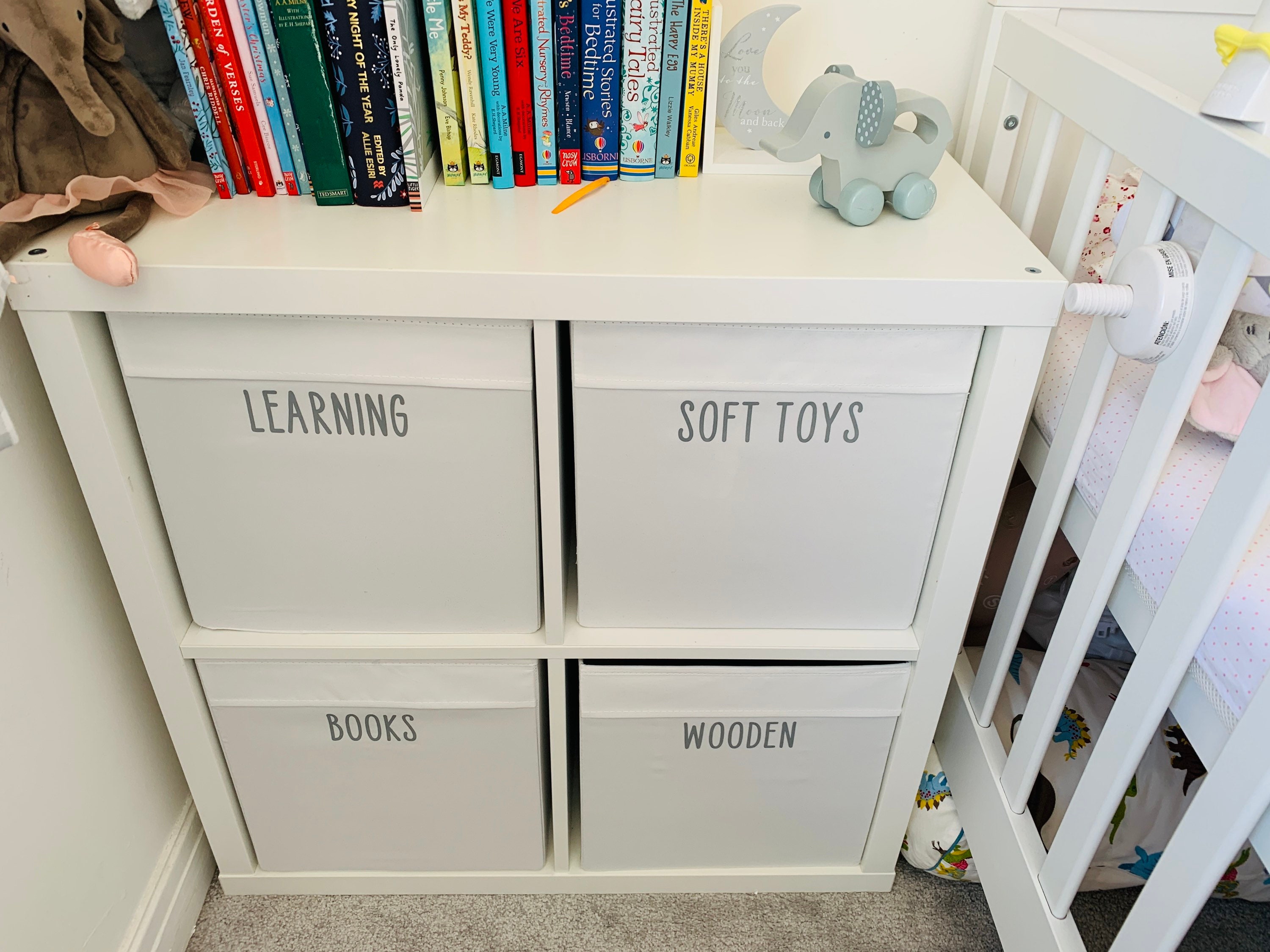 Custom-made Vinyl Transfer Labels to fit any toy storage unit or system you have (with a smooth surface - please note they will not adhere to canvas or fabric with a textured surface - they stick perfectly to the IKEA drona fabric boxes as they are not textured).